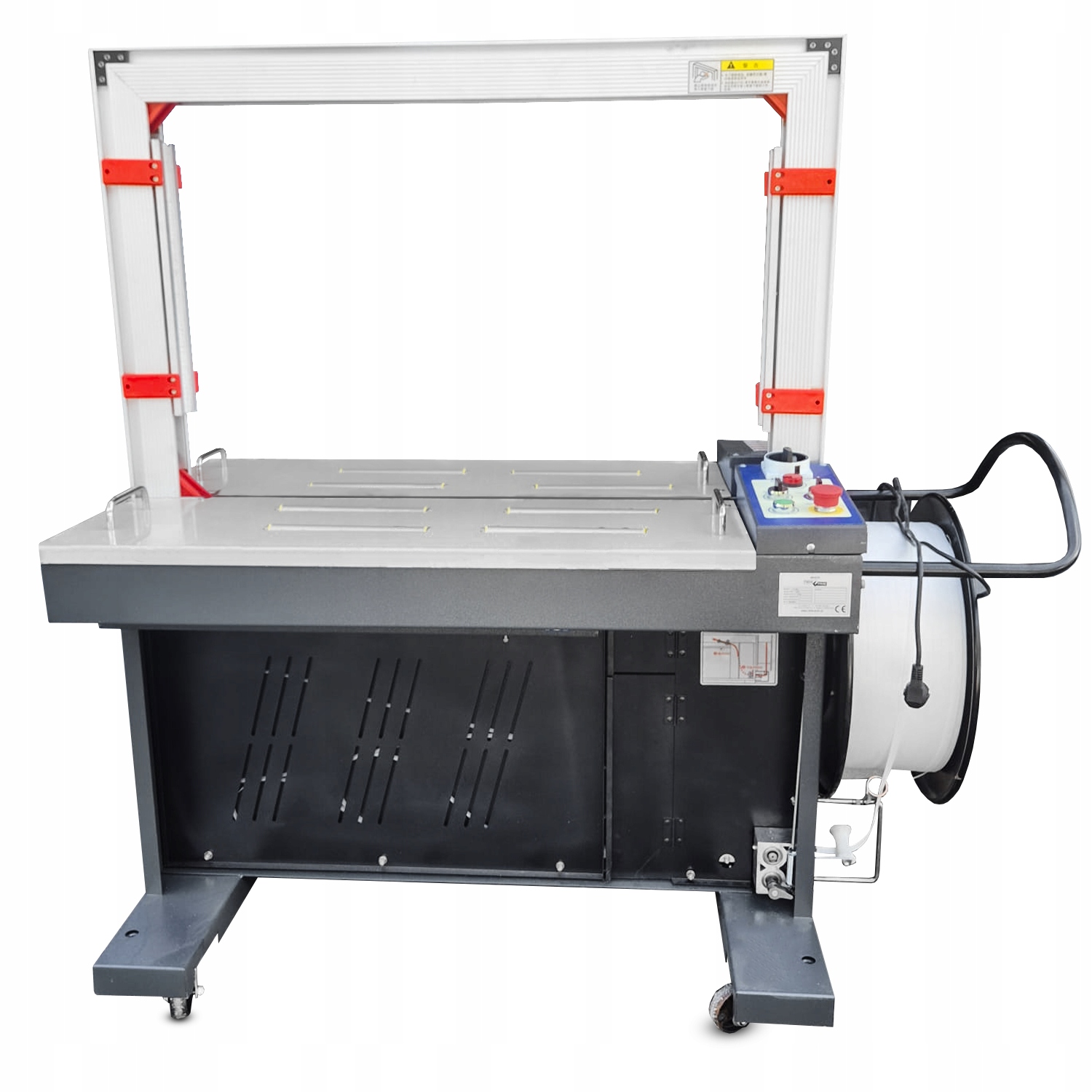 Міцна конструкція пристрою та великий робочий стіл дозволяють пакувати великі та важкі ящики. Пристрій працює стабільно.