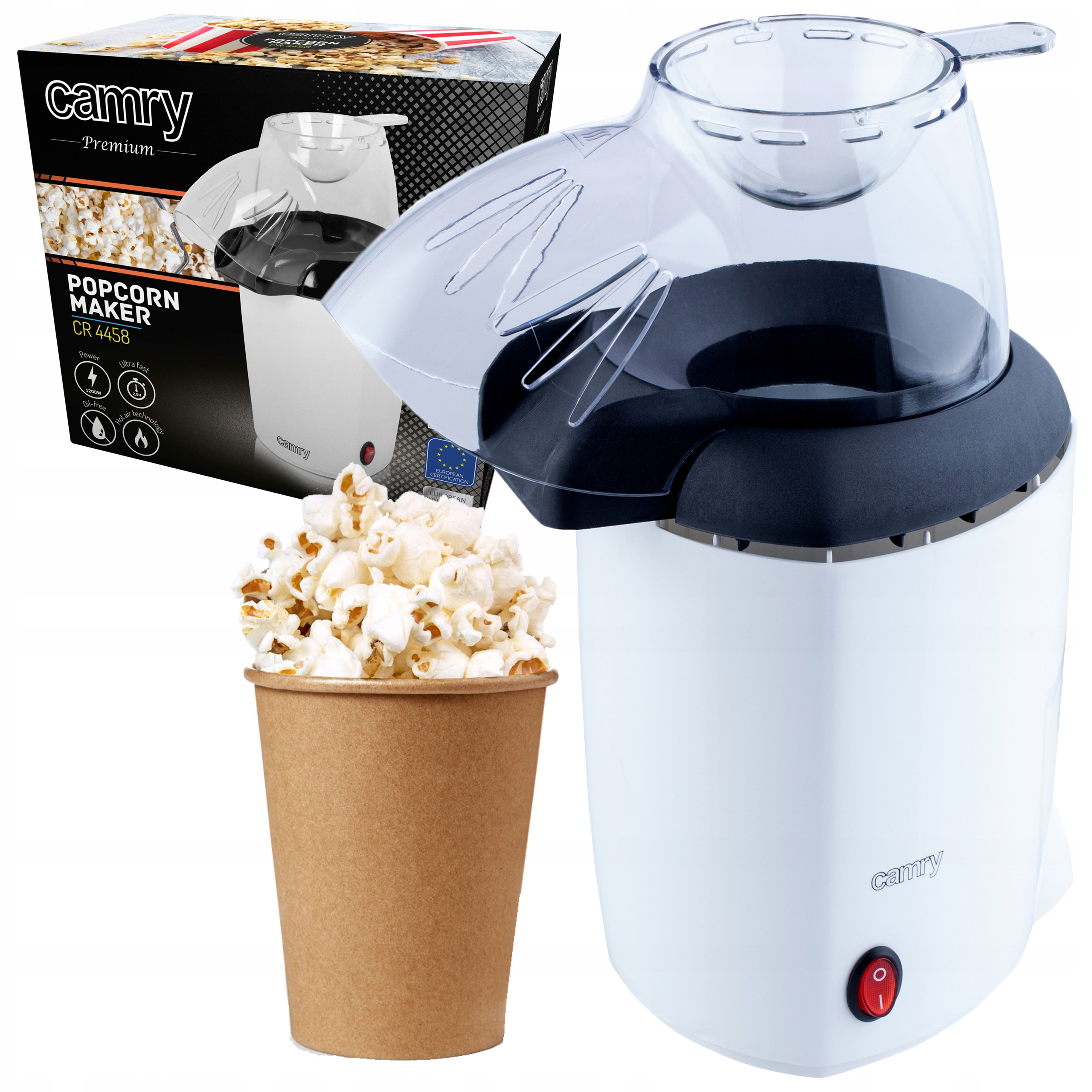 Автомат для приготування попкорну CR 4458 — чудовий вибір для людей, які люблять хрусткий попкорн і водночас не хочуть смажити його в олії. Завдяки використанню гарячого повітря кукурудзяні зерна готуються набагато здоровішим способом, без жодного грама жиру. Одна порція готується приблизно за 2,5 хвилини, а це означає, що Ви можете вчасно приготувати попкорн під час телевізійної реклами. або безпосередньо перед приходом гостей, яким нічого запропонувати. Апарат для приготування попкорну особливо сподобається дітям і людям, які просто люблять пожувати.
