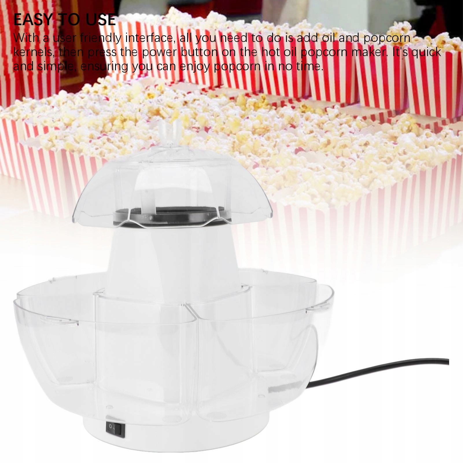 2. ЗРУЧНИЙ ДИЗАЙН: просто додайте до 75 грамів зерен попкорну на лоток для попкорну. Чотири знімні контейнери для попкорну служать зручними мисками для подачі, що дозволяє легко розважати гостей і подавати смачні закуски.