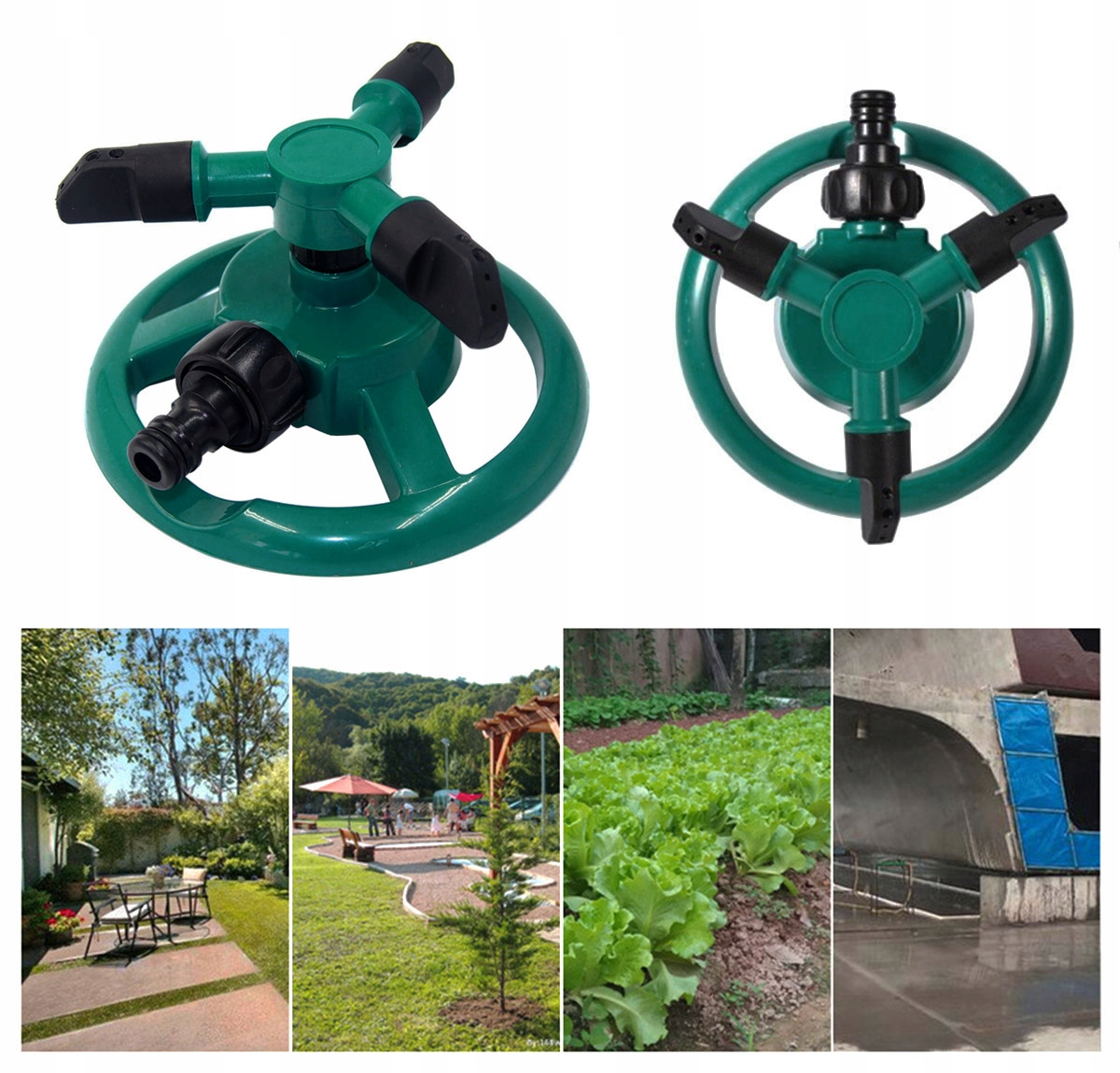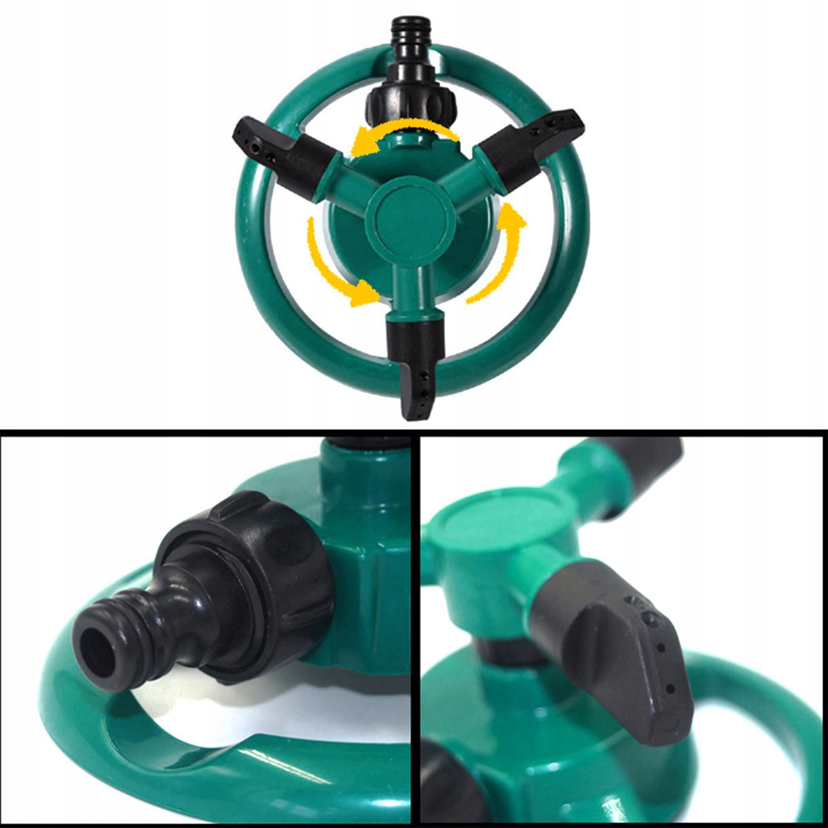 - Автоматичний, обертовий садовий спринклер, оснащений трьома руками. сторони).