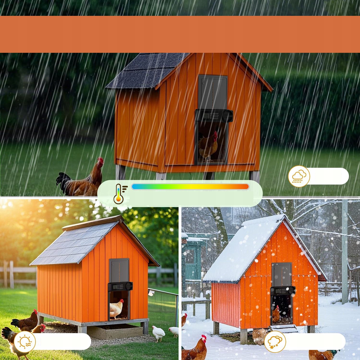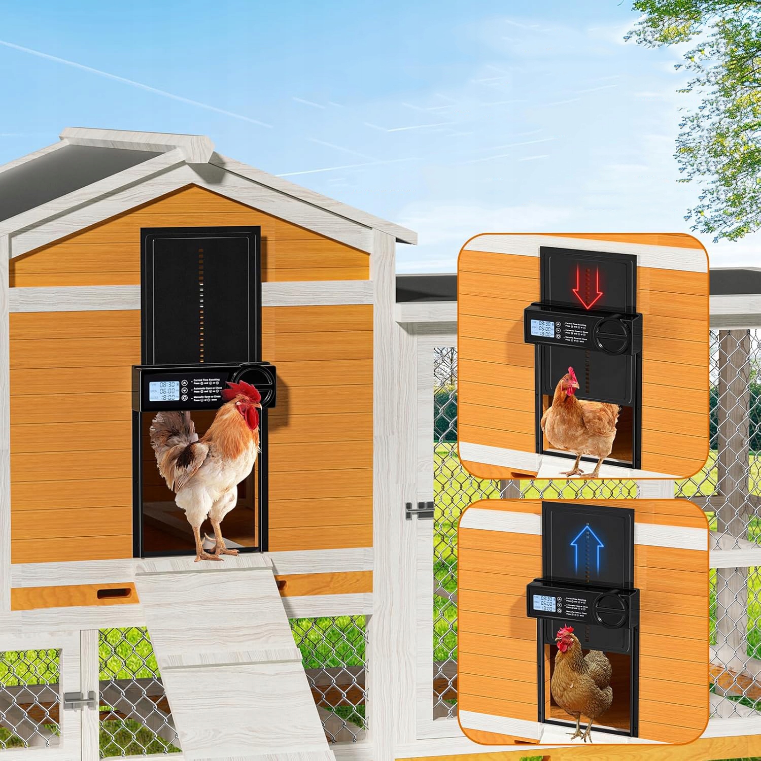 🐔Просте керування -Завдяки практичній функції таймера та зручному висококонтрастному дисплею ви можете легко встановити час відкриття та закриття автоматичної заслінки для курей, що полегшує щоденне керування та підтримує природний ритм тварин, також підходить для зміни умови освітлення та для технічно менш просунутих користувачів.