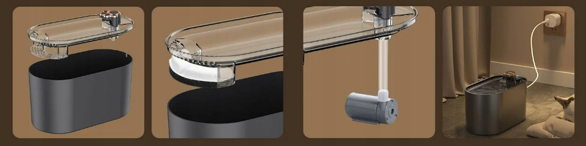 Вода безперервно проходить через два фільтри і повертається повністю очищеною та аерованою. Завдяки цьому ваш улюбленець п'є воду без бактерій і залишків їжі, а сама вода також не має неприємних запахів.