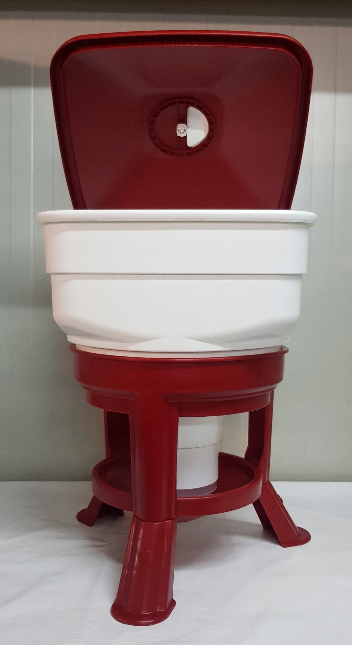 Форма і розміри поїлки були скориговані таким чином, щоб поїлка була стабільною навіть при невеликій кількості води. Кришка поїлки захищає від проливання. Проста система наповнення та очищення поїлки.Завдяки своїй місткості її можна використовувати на присадибній ділянці чи фермі.