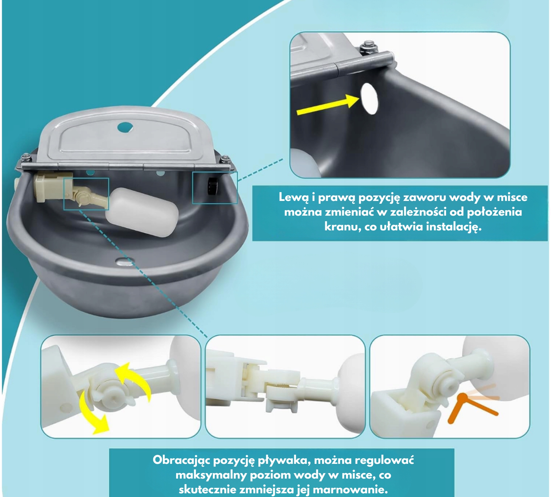 Поїлка використовує поплавковий клапан, який автоматично підтримує постійний рівень води.