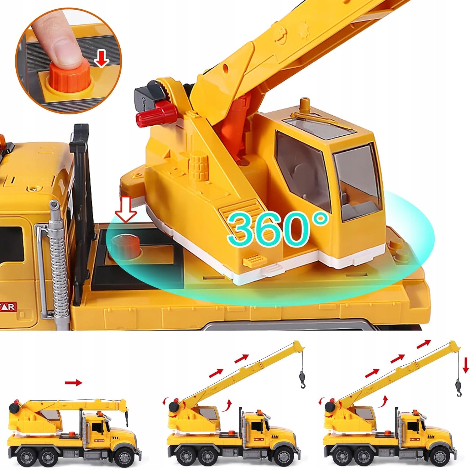 🚧Іграшка-кран має такі функції:натисніть червону кнопку на передній частині автомобіля, стріла піднімається вгору, натисніть кнопку біля положення шини, стріла опускає машину. Додає багато задоволення дітям.