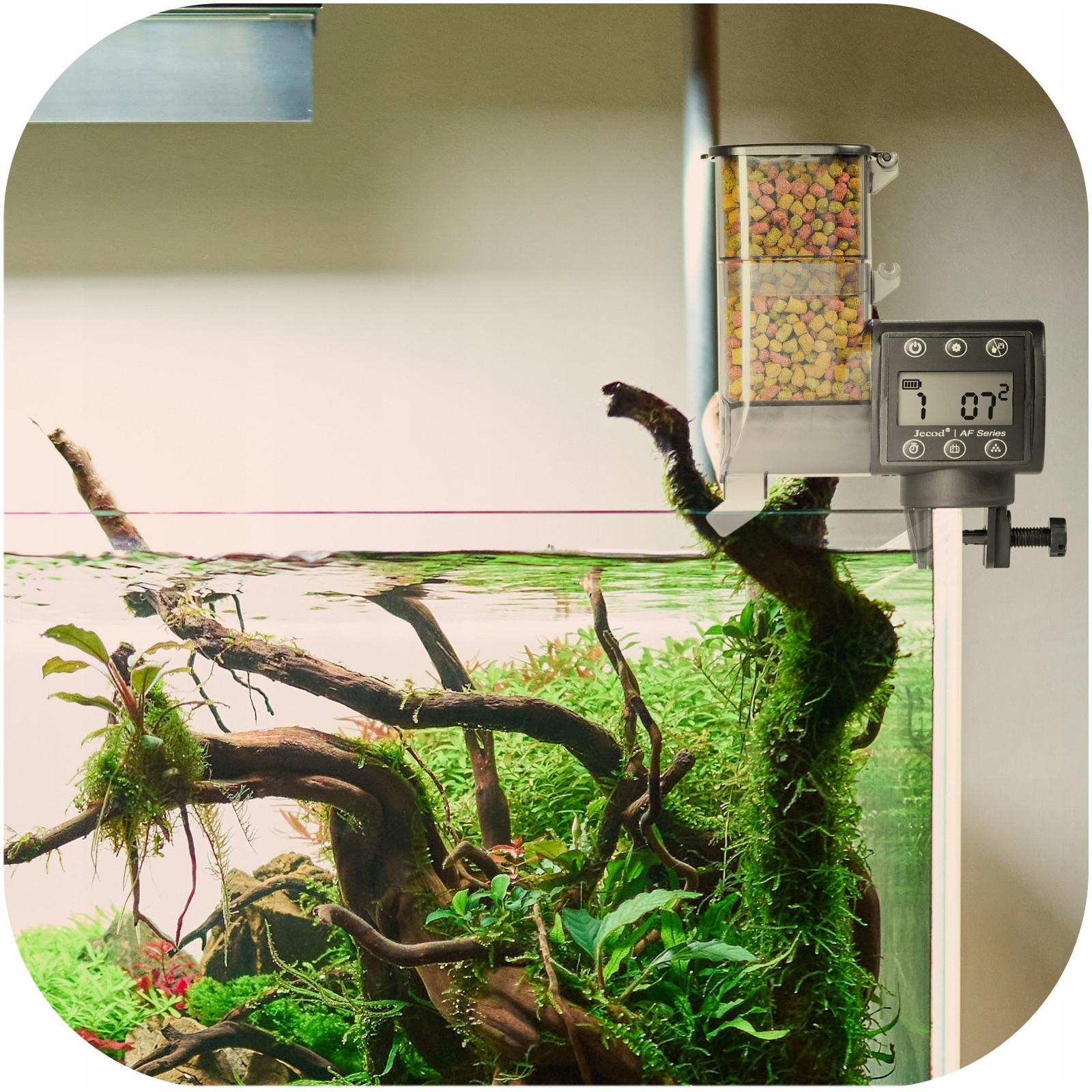 Годівницю легко встановити на краю акваріума, а її інтуїтивно зрозумілий інтерфейс дозволяє легко керувати графіком годування навіть людям які раніше не мали справу з такими пристроями.