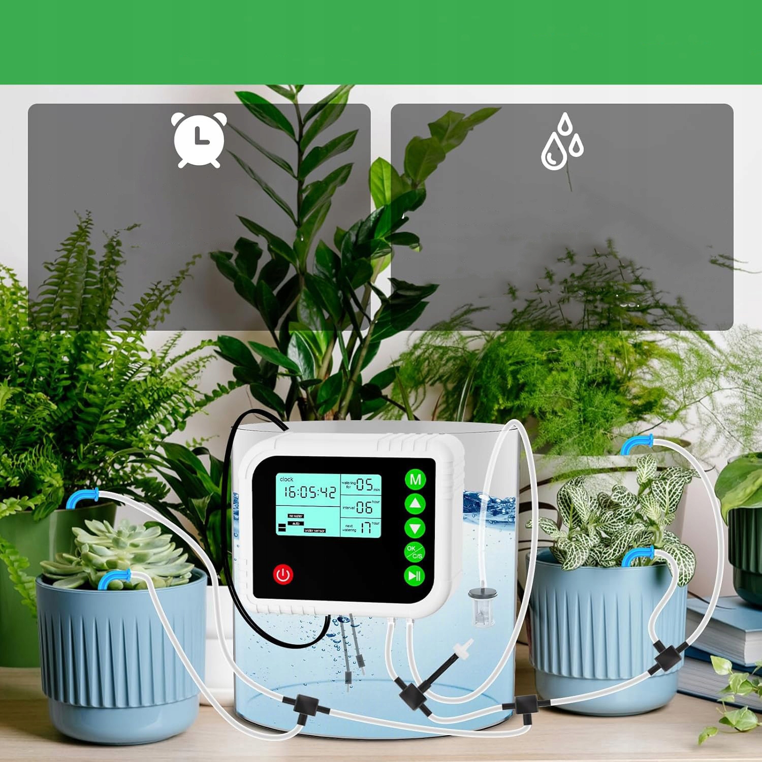 ▶️Щоб запобігти утворенню води. при розташуванні ємності для води вище рослин на виході води встановлюється протисифонний пристрій. Коли рівень води низький або зонд засмічений, пристрій подасть звуковий сигнал, щоб нагадати вам додати воду та очистити.