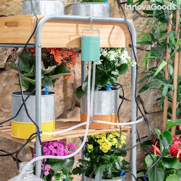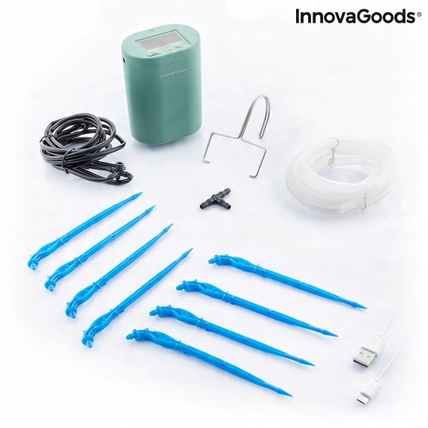 Цей сучасний поливальний пристрій працює від акумуляторних батарей (включає USB-кабель для зарядки micro USB) і програмується, оскільки має цифровий таймер, що вказує перерву між днями поливу (від 1 до 9 днів) і тривалість поливу. за лічені секунди.