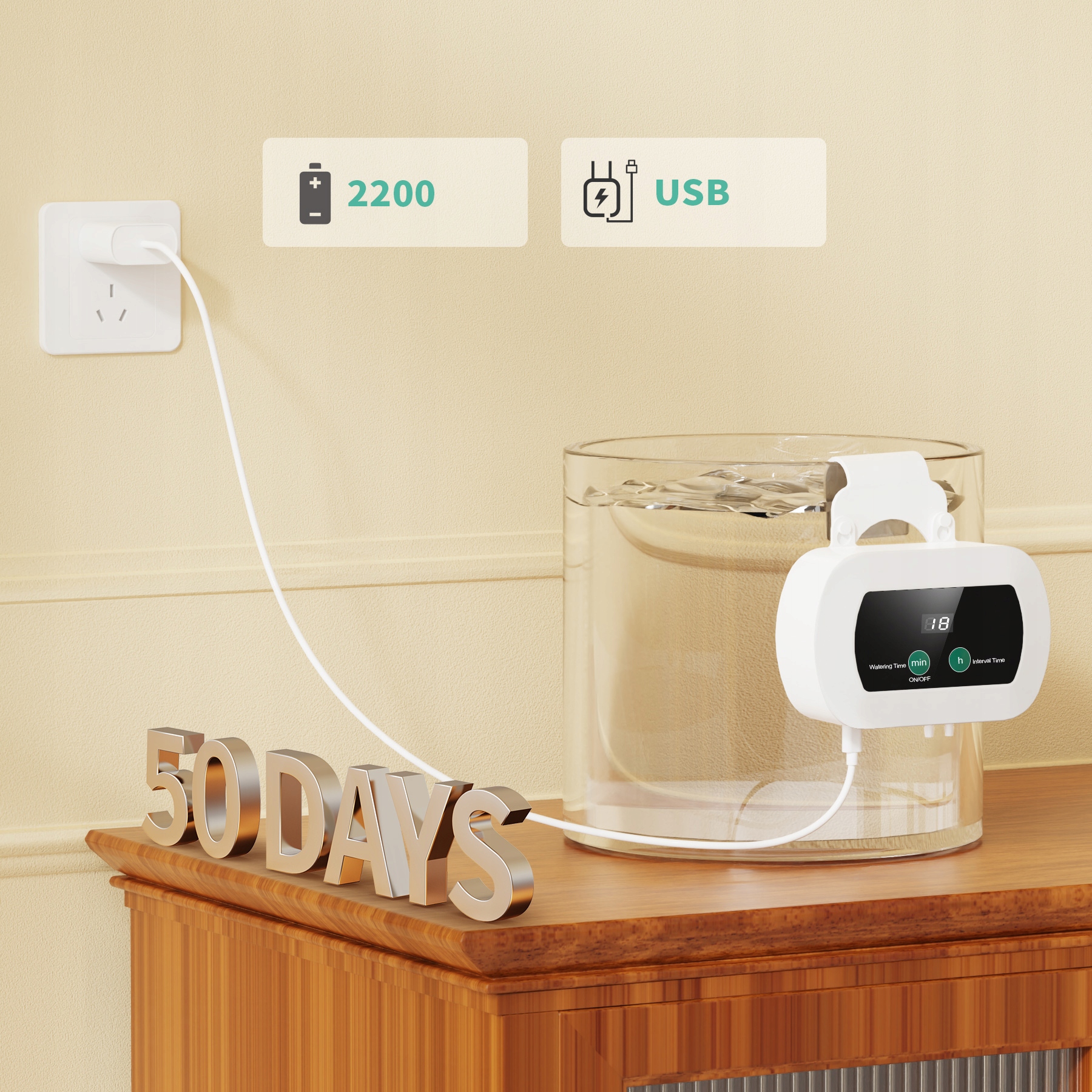 Автоматична система крапельного поливу має вбудований акумулятор ємністю 2200 мАг, який може працювати 30-50 днів після повної зарядки. Ви також можете використовувати його протягом 10 днів, змінивши його один раз після максимального часу поливу (30 хвилин) і максимальної частоти поливу (3 години). Навіть якщо ви перебуваєте за містом, ви можете використовувати зрошувальну систему, щоб поливати рослини в горщиках, не турбуючись про те, що вода залишиться.