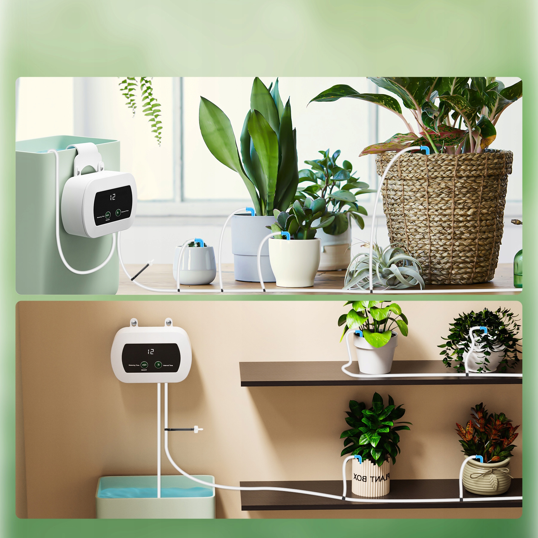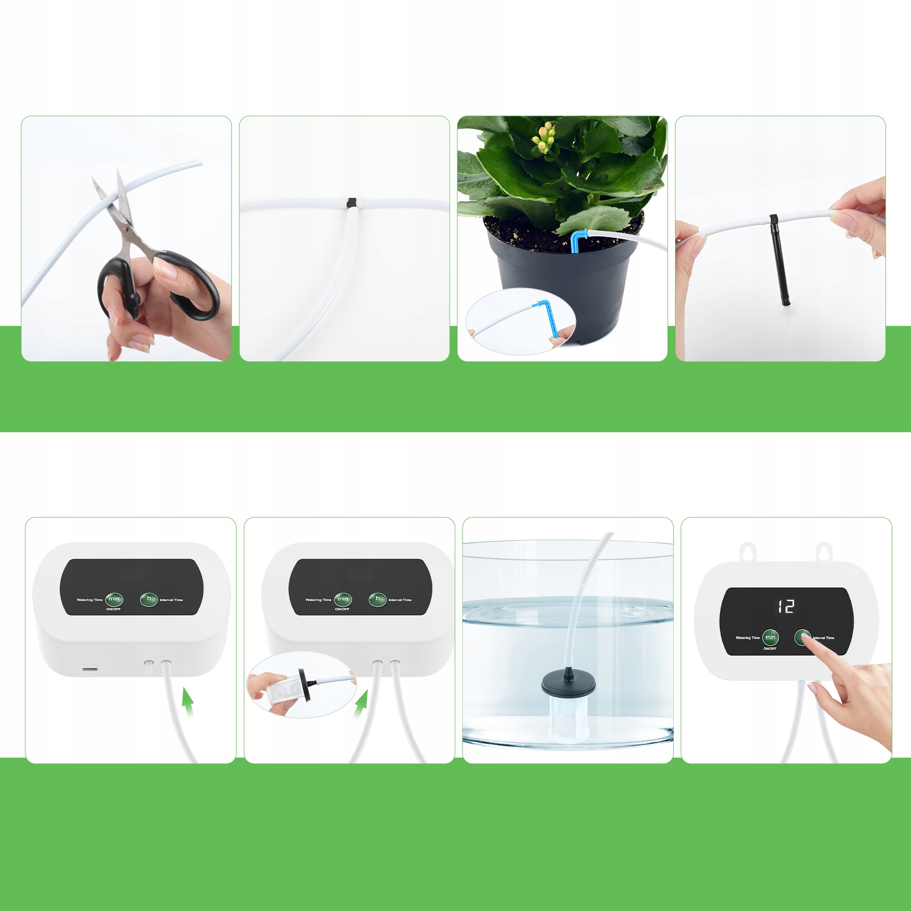 Автоматична система крапельного зрошення використовує зарядний інтерфейс USB-C для більшої зручності та сумісності. Цю систему крапельного зрошення можна розмістити в приміщенні, на балконі, в оранжереї та інших місцях для автоматичного поливу. (Примітка: не розміщуйте його на вулиці!)
