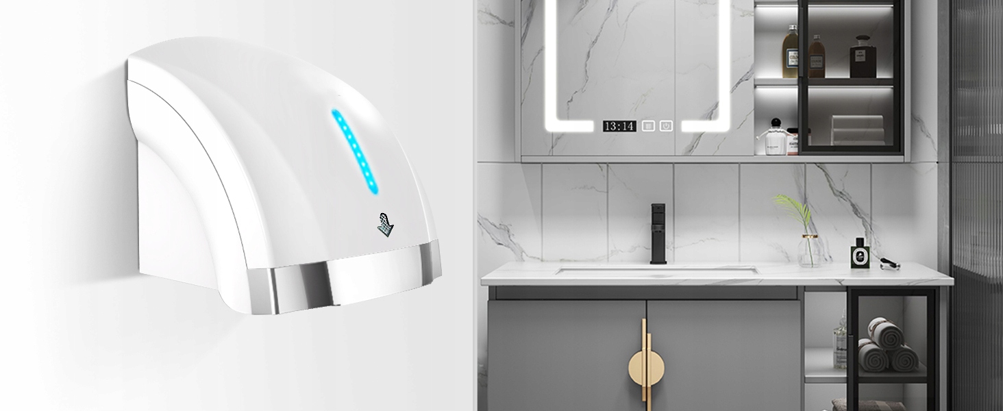 ✅ 【Швидке висихання ваших рук】 : оснащений решіткою вентиляції, ефективно зменшуючи шум до 40 децибелів. Висока швидкість сушіння (протягом 15 секунд), швидка реакція (приблизно 0,25 секунди) та діапазон виявлення 3-5 дюймів забезпечують більшу чутливість, ніж традиційні електричні сушарки для рук;