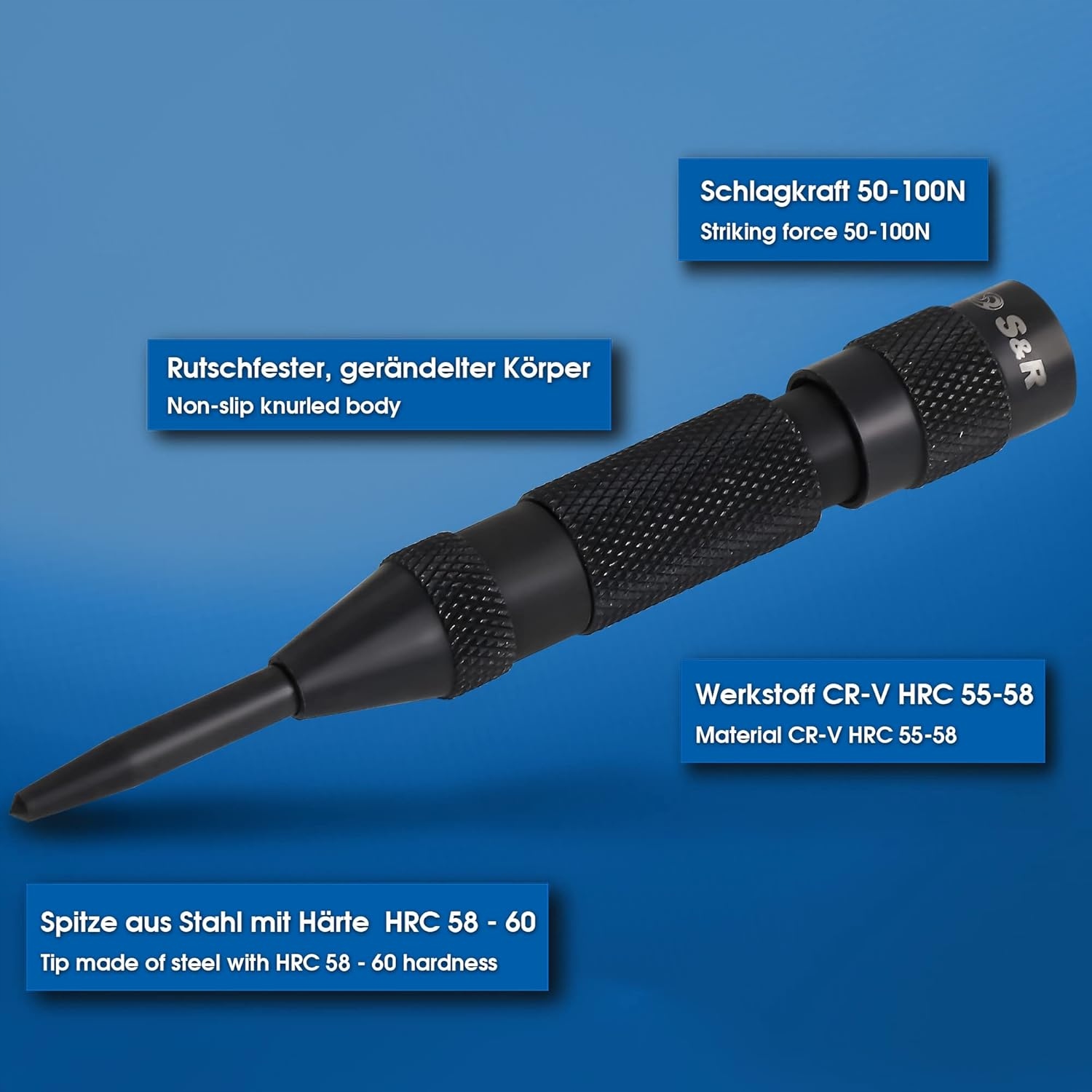 Автоматична точка 130 мм. 50-100n + spare CR-V mandrel durable for metal, wood, stone, plastic S&R
