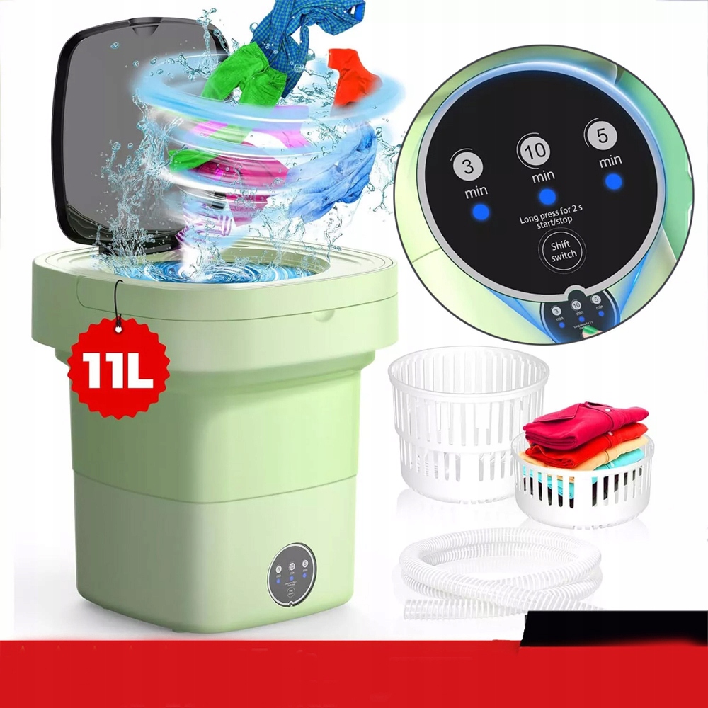 пральна машина 11 л великого складання, збільшуйте шкарпетки для нижньої білизни дитячий одяг Маленька міні -пральна машина 11L Зелений (зі стіком + кошику з капанням)