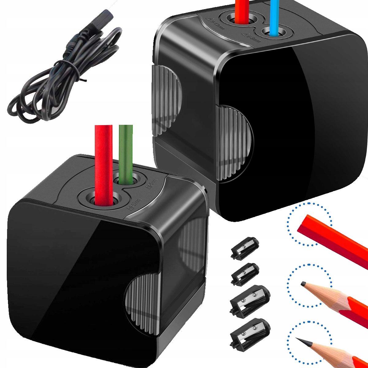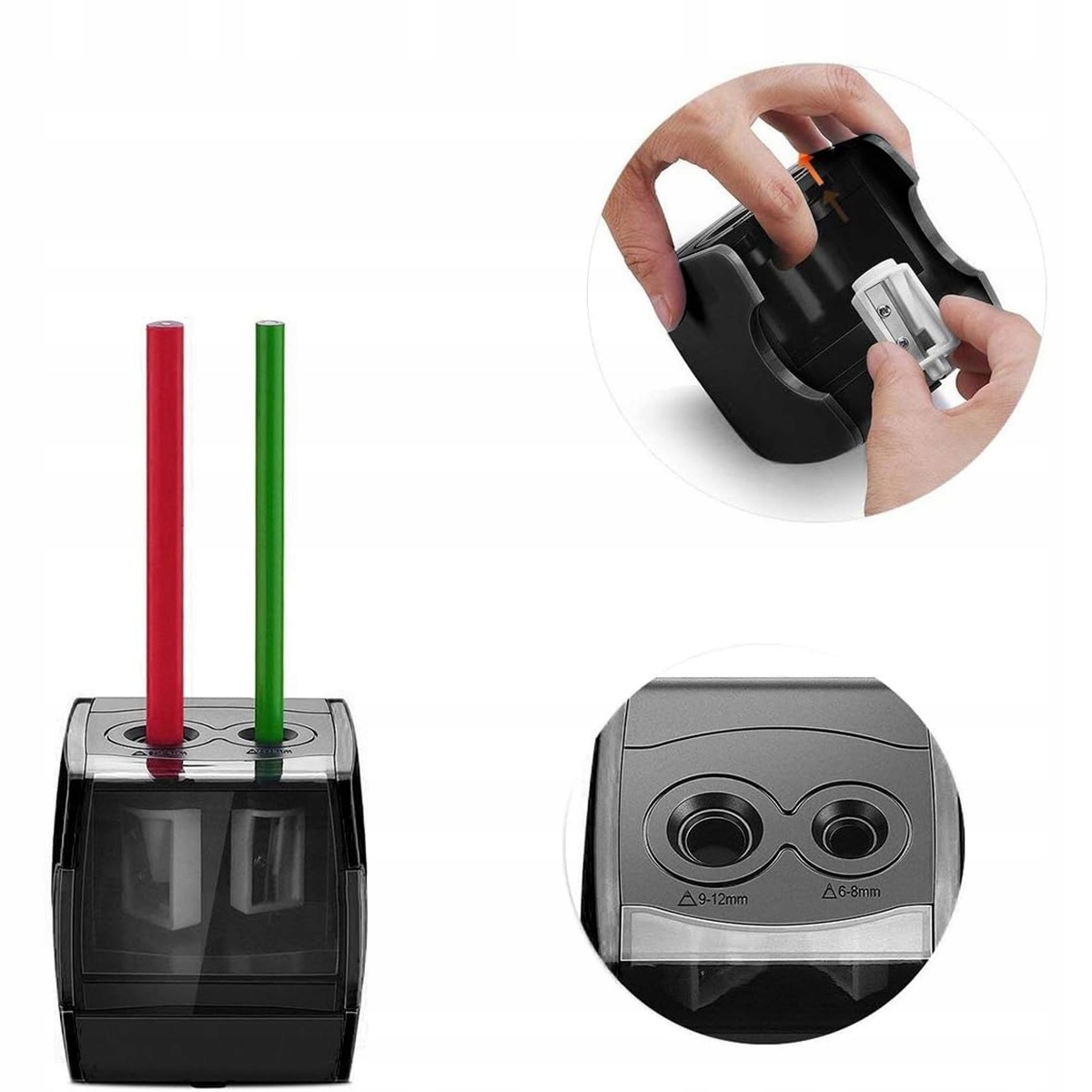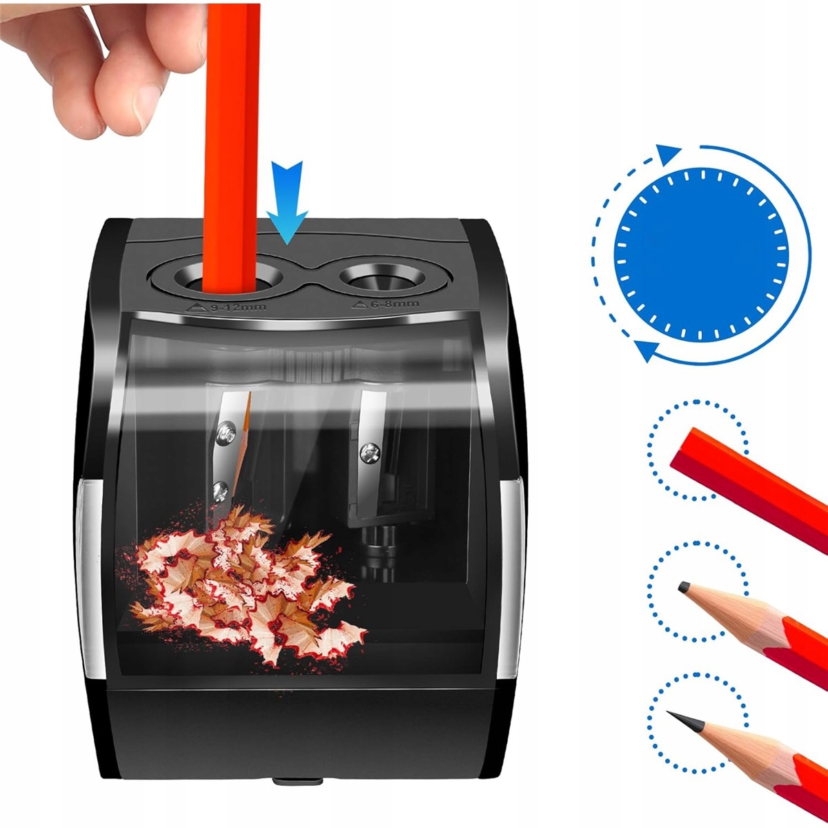 - Ця точилка оснащена потужним двигуном і надзвичайно гострими лезами, які Автоматично заточує олівці за 3-5 секунд. У комплект входять чотири запасні леза, що усуває потребу купувати нові.