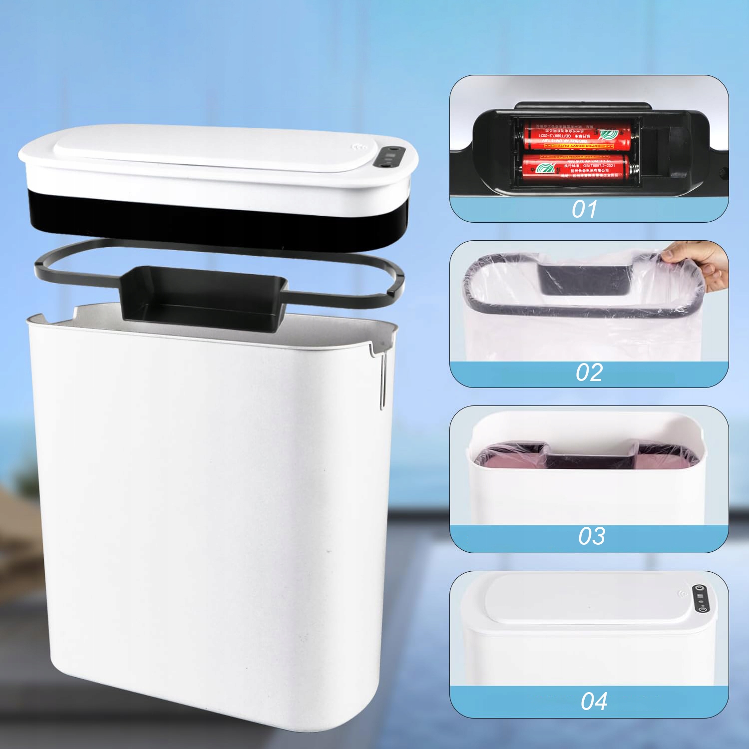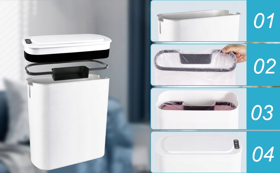- Маленький бак для сміття з датчиком руху та кришкою маленький і тонкий, економить місце, красивий і простий у збірці та використанні.