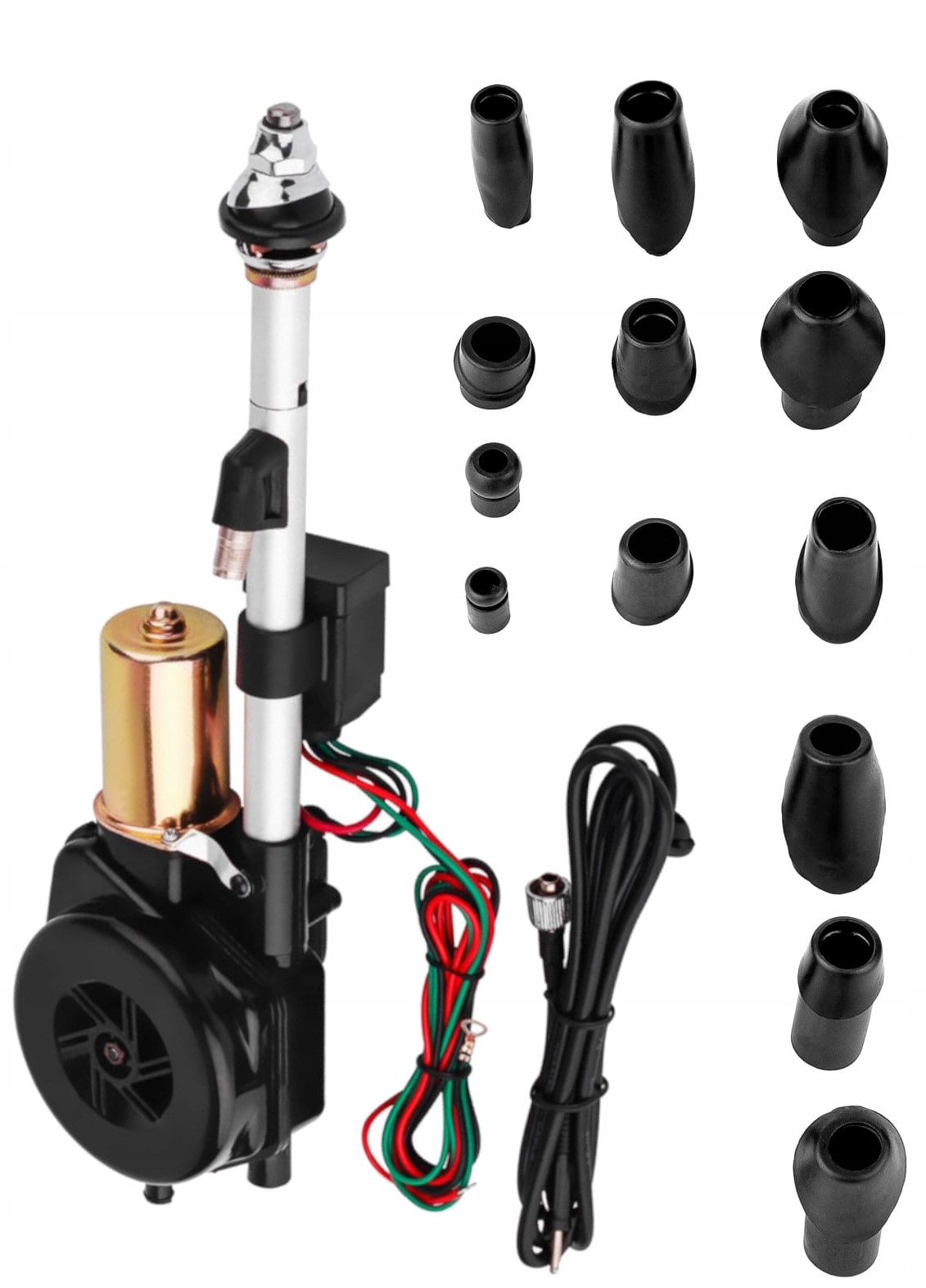 Тихий і швидкий двигун антени забезпечить безпроблемне використання антени. У комплект входить 11 змінних головок (адаптерів), що робить антену універсальною і підходить практично для будь-якого автомобіля. Може встановлюватися в легкових автомобілях і фургонах.