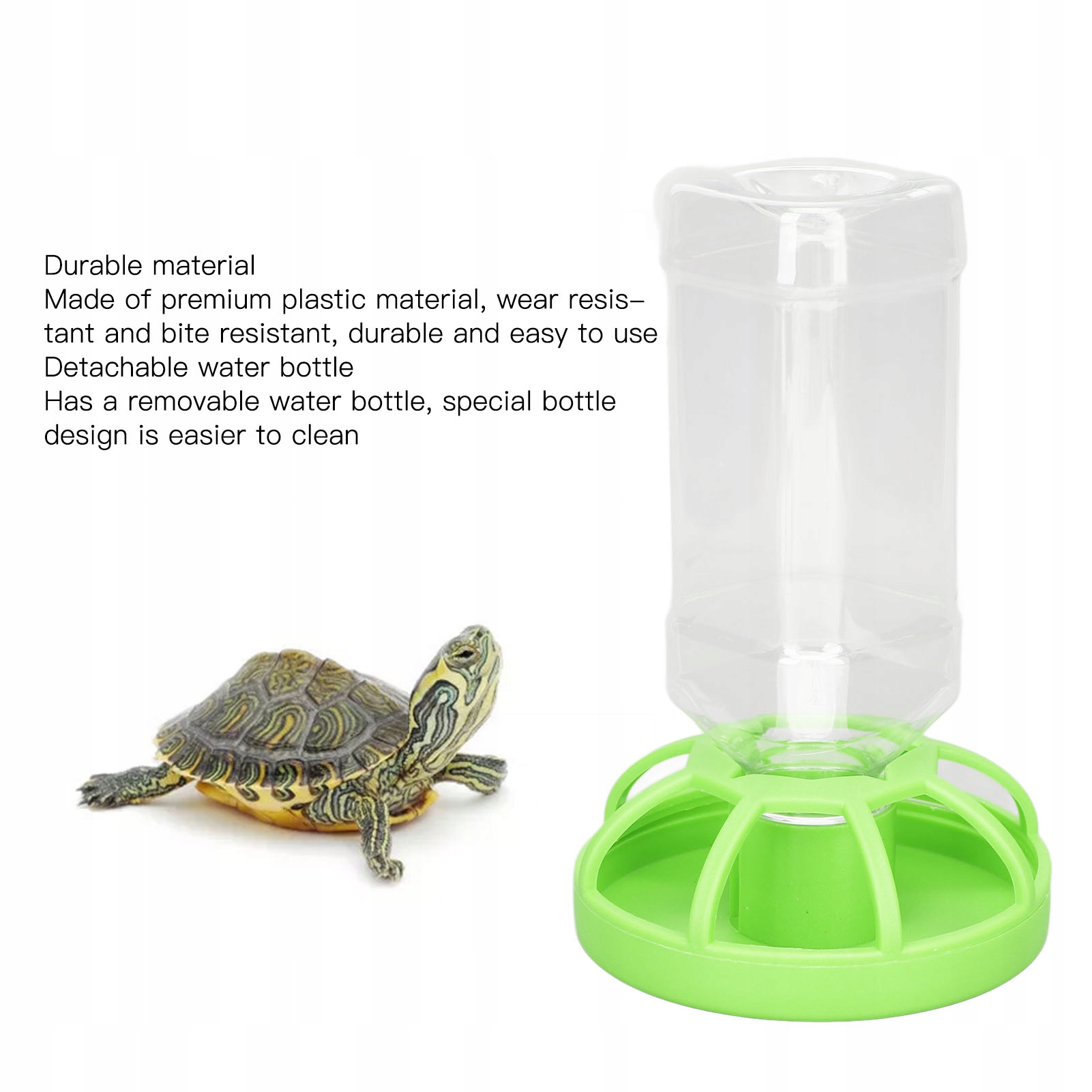 4. Використовувані предмети: Диспензатор води для рептилій підходить для черепах та домашніх ящірок. Округлі краї та безпечні, вони не завдадуть шкоди маленьким тваринам.