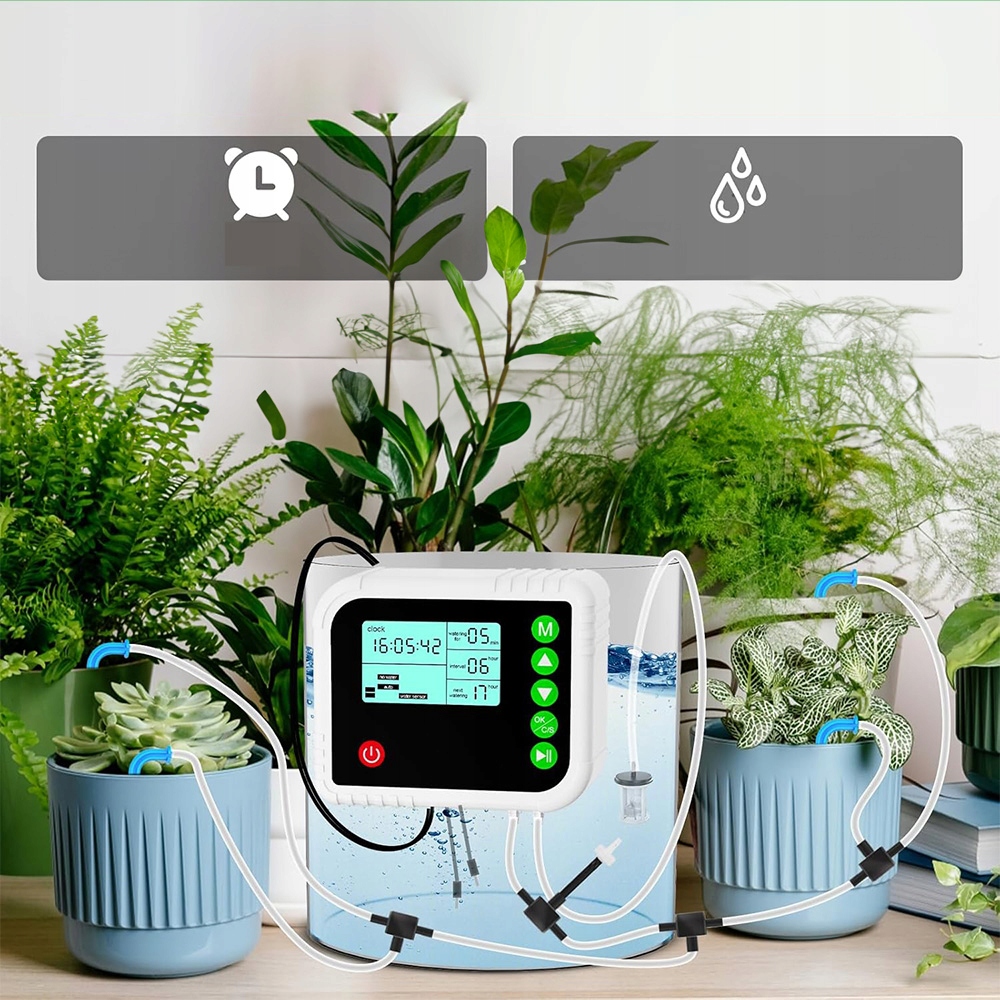 На відміну від інших систем зрошення рослин, зрошувальна система використовує сильніший насос потужністю до 400 мл/хв, що гарантує рівномірно поливати до 15 горщиків. Підходить для зрошення газонів, дворів, садів, овочів, висячих кошиків, горщиків, квіткових грядків, оранжерних тощо. Рослини краще ростуть, коли ви повільно і рівномірно поливаєте їх.