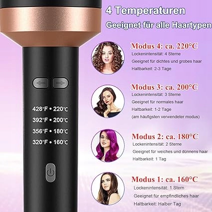 - Економія часу завивання одним дотиком: швидке нагрівання за 15 секунд. Ця плойка підходить для будь-якого віку. Досвід чи знання не потрібні. Інноваційна автоматична система завивки забезпечує професійне укладання волосся, як у перукарні.
