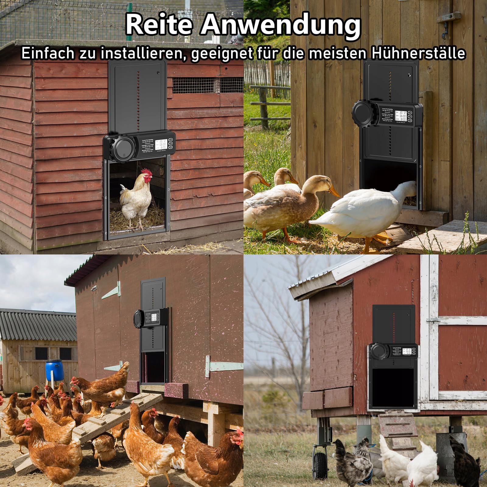 【Зручний інтерфейс для будь-якого віку】: автоматичні двері для курятника з великим інтуїтивно зрозумілим дисплеєм полегшують керування цим пристроєм. Незалежно від того, чи ви розбираєтеся в техніці, чи новачок, він розроблений для користувачів будь-якого віку та гарантує, що навіть старші користувачі зможуть легко ним керувати.