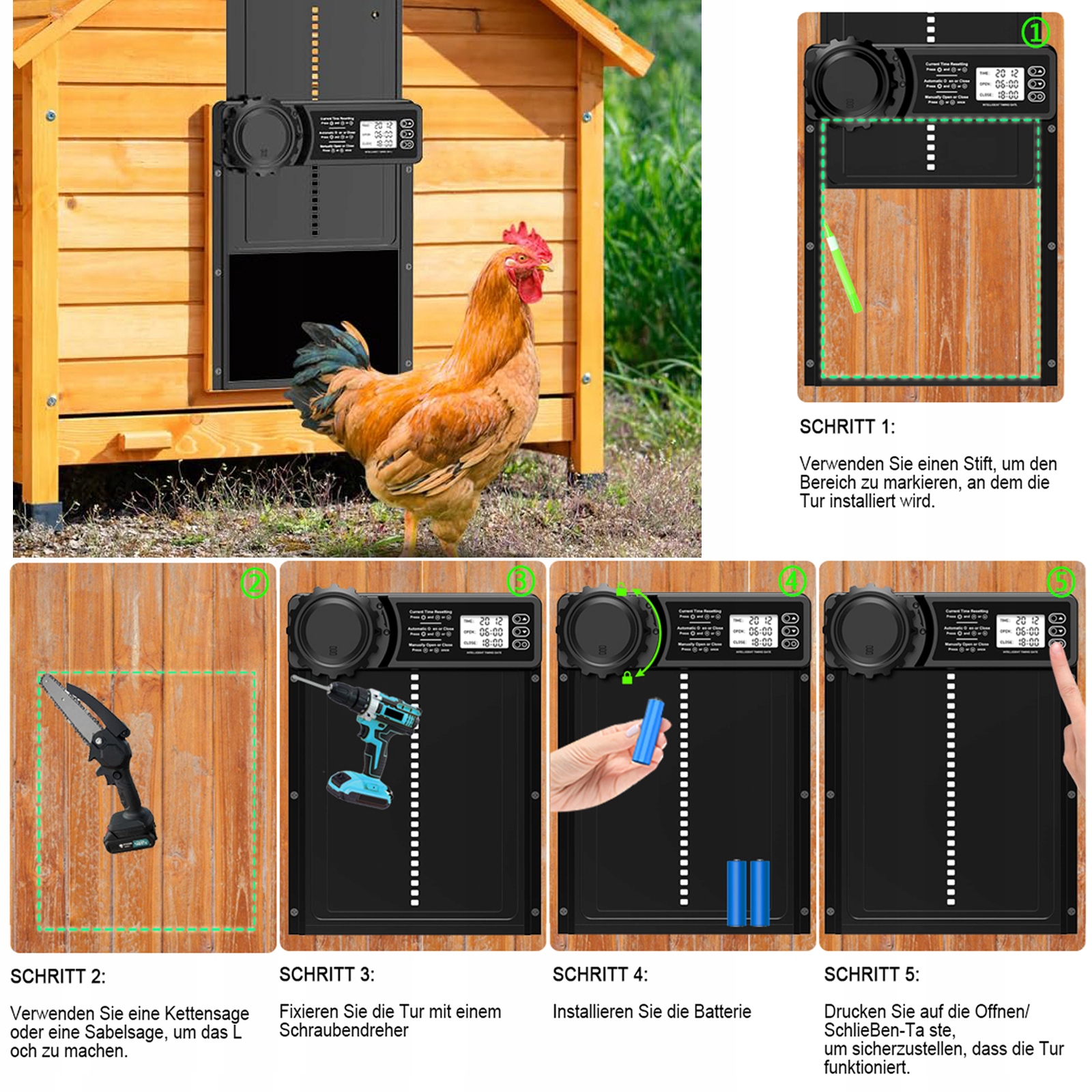 【Безпечніше та розумніше】: автоматичні дверцята для курей, перестаньте хвилюватися про те, що ваших курей переслідуватимуть лисиці, норки тощо, і запобігте проникненню хижаків у курник уночі за допомогою наших автоматичних воріт для курей!