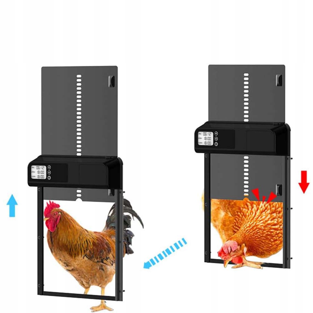 Вбудований датчик виявляє перешкоду в зоні дверей і негайно припиняє закривати, щоб уникнути травмування курей і забезпечити їх безпеку.