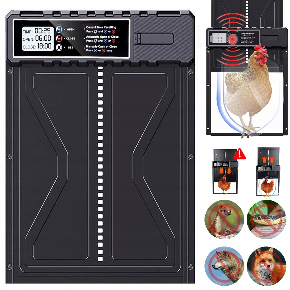 🐔🐔 - Вбудована передова технологія датчика виявляє найменші перешкоди та негайно зупиняє процес закриття, забезпечуючи оптимальний захист птиці.