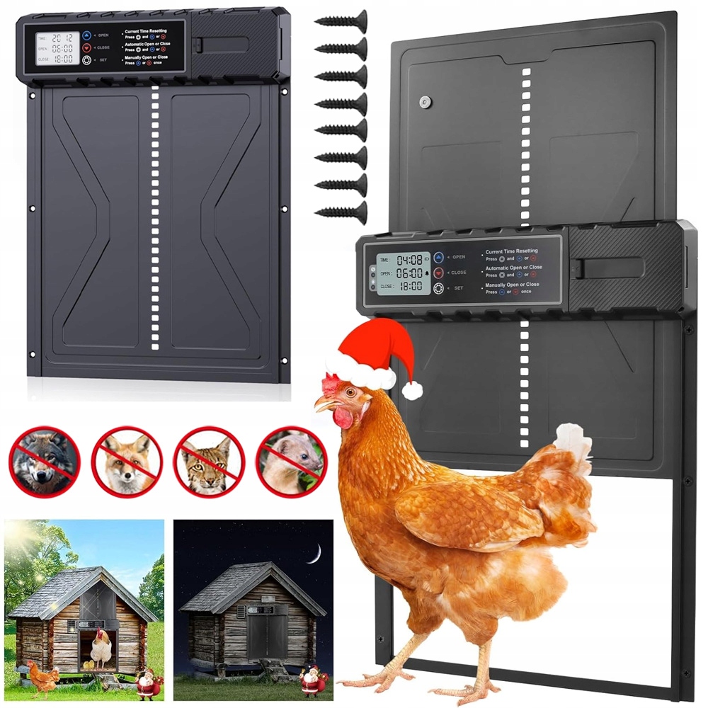 Вивчіть новий вимір простоти завдяки нашому автоматичному курячому клапті. Ультрайнійний РК -дисплей дозволяє легко встановити. Забудьте про складні конфігурації та запрограмуйте час відкриття та закриття в мить оці.