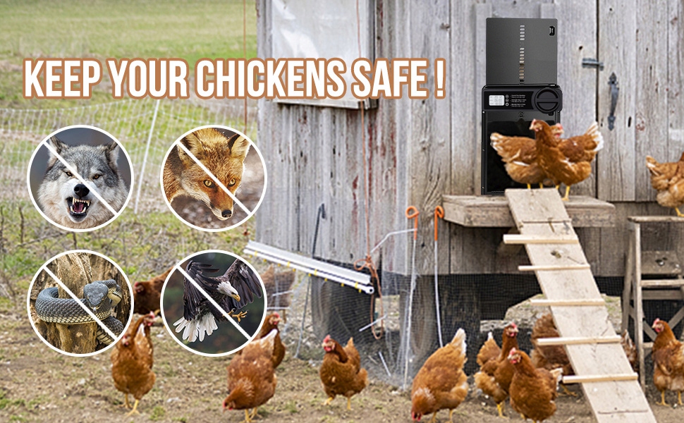 Виготовлений з міцного алюмінію, наші автоматичні двері до генатичних рикетів були розроблені для витримки екстремальних погодних умов. Завдяки нашим топ -класом курячих дверей ваші кури будуть безпечними навіть у складних погодних умовах.