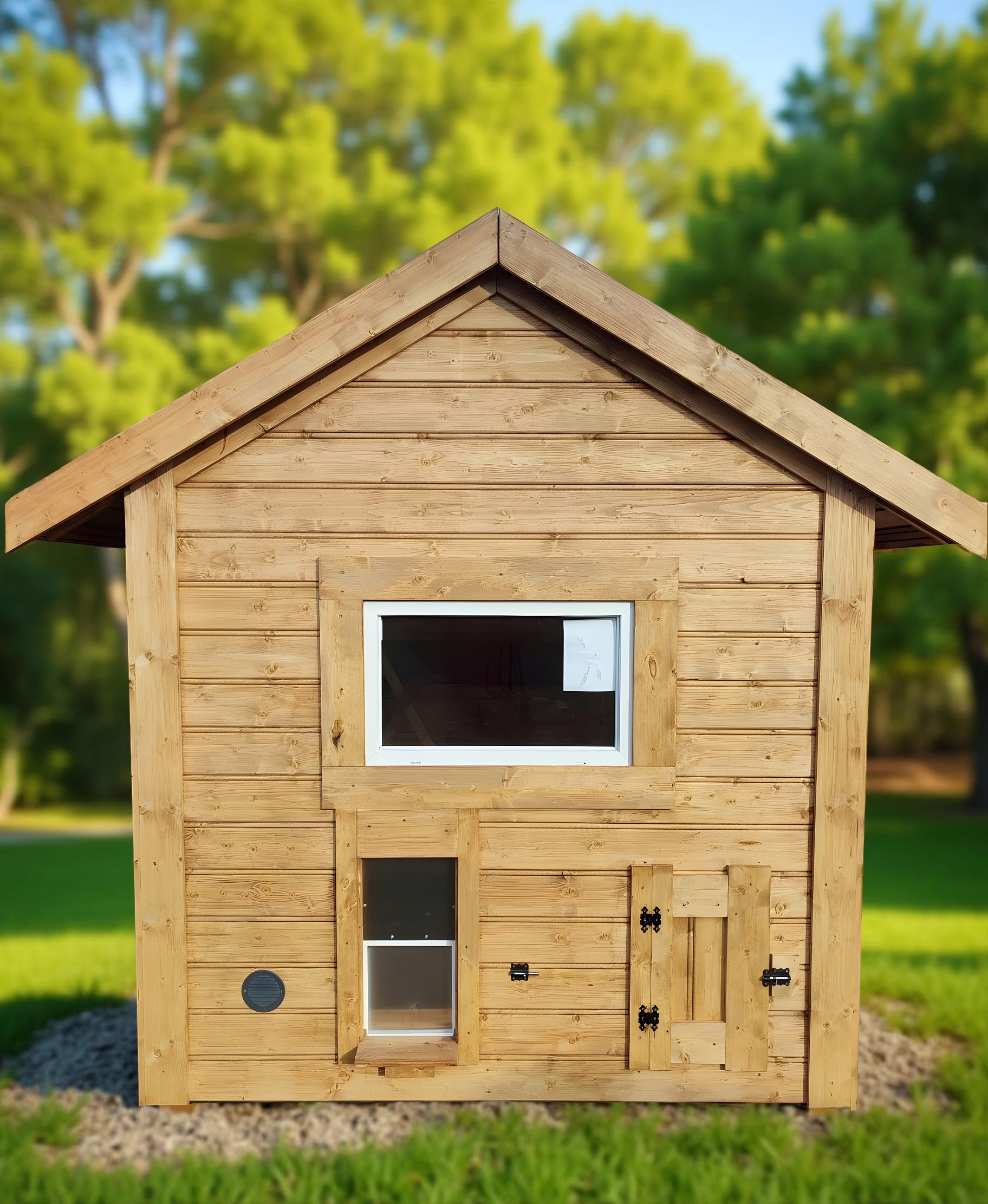Автоматичні двері до курника, виготовленого з нержавіючої сталі та ПВХ до розміру, основна версія з аналоговими програмістами.