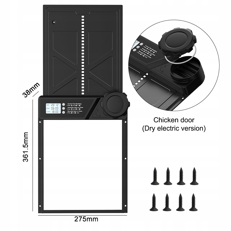 Автоматичні двері до курячого будинку - акумулятор, що працює, з таймером та РК -екраном