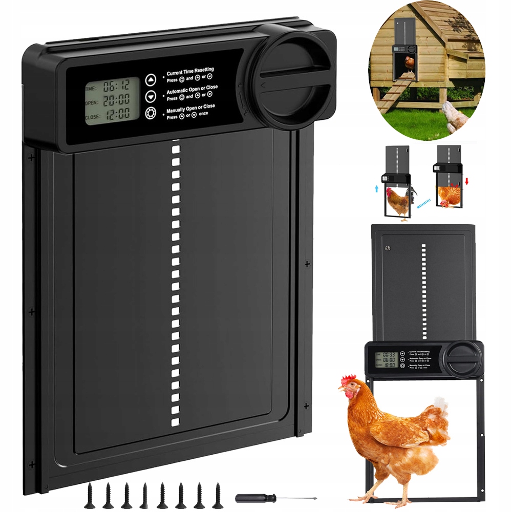 🐔🐔- It is equipped with an integrated LCD screen that allows easy and precise коригування часу відкриття та закриття. Щоб запобігти травмам курячих та забезпечити їх безпеку.