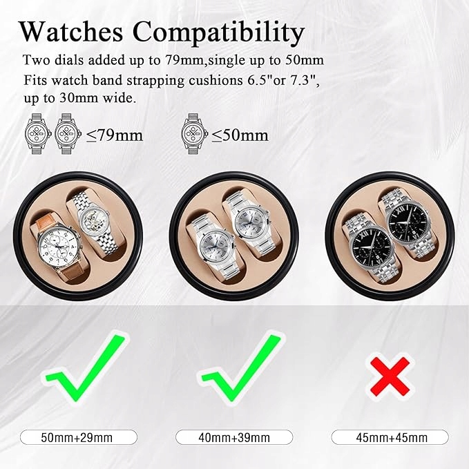 - Дуже тихе обертання: стійка для 4 годинників, що працюють на дуже тихому двигуні Mabuchi, ця підставка для автоматичного годинника міцна і красива, щоб спокійно і безпечно повернути годинник. Автоматична гайка дозволяє годинникам колекціонерам перед тим, як котитися та подавати дату їх автоматичних годинників, що допомагає підтримувати механічний годинник у хорошому стані