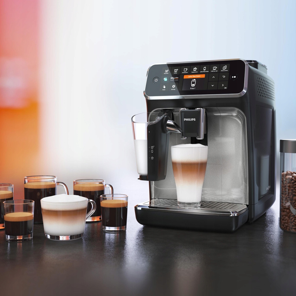 , відпочивати в спокої і тихо, навіть коли ви готуєте каву. Спеціальний дизайн з використанням заспокійливих технологій та тихого шліфування означає, що машини Philips 4300 років створюють на 40% менше шуму, ніж попередні моделі . Тихий сертифікат позначення підтверджує тиху роботу пристроїв
