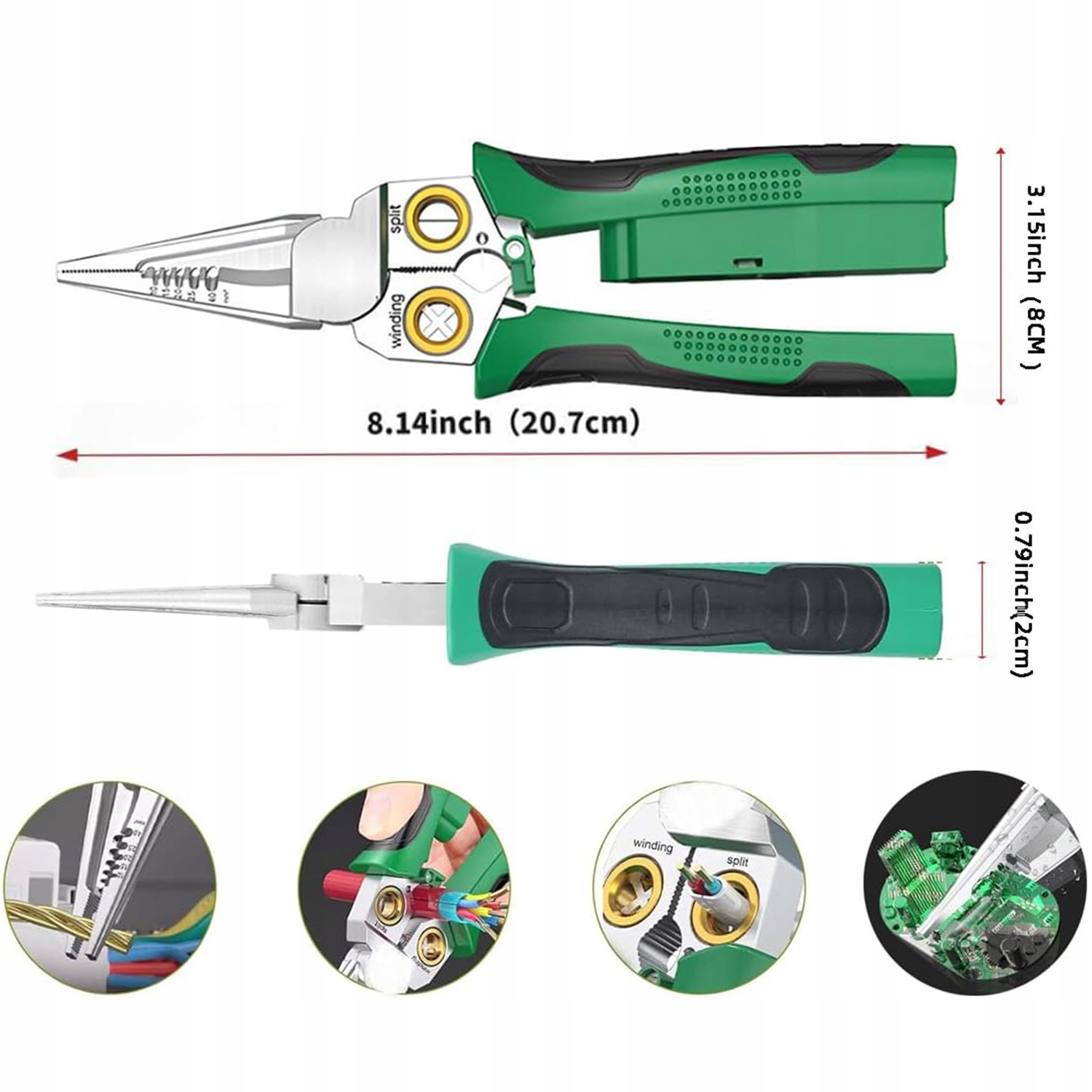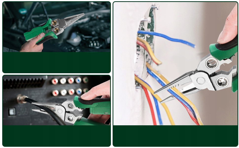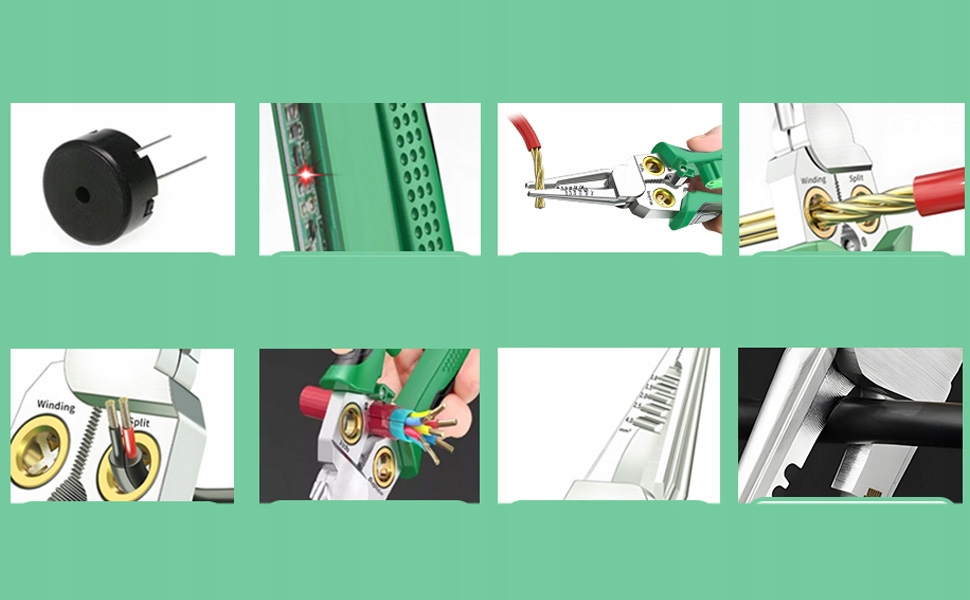 ✔️Він має такі функції, як вимірювання струму, різання дроту, зачистка, намотування та обтиск, що робить його дуже корисним для електриків.