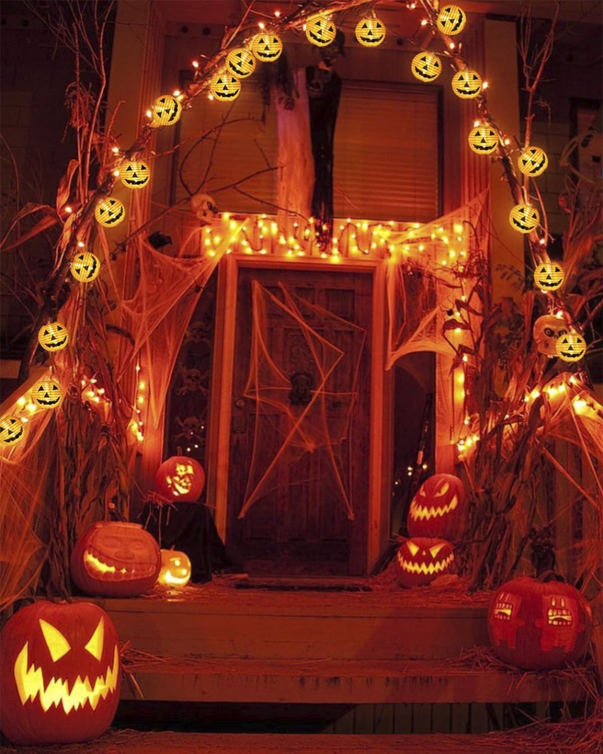 - Light chain for Halloween, battery: lanterns, light chain with nice LED lanterns with a timer, creates a pleasant atmosphere and a beautiful atmosphere in every room, light chain for batteries for use outside, for all saints, decoration for Halloween