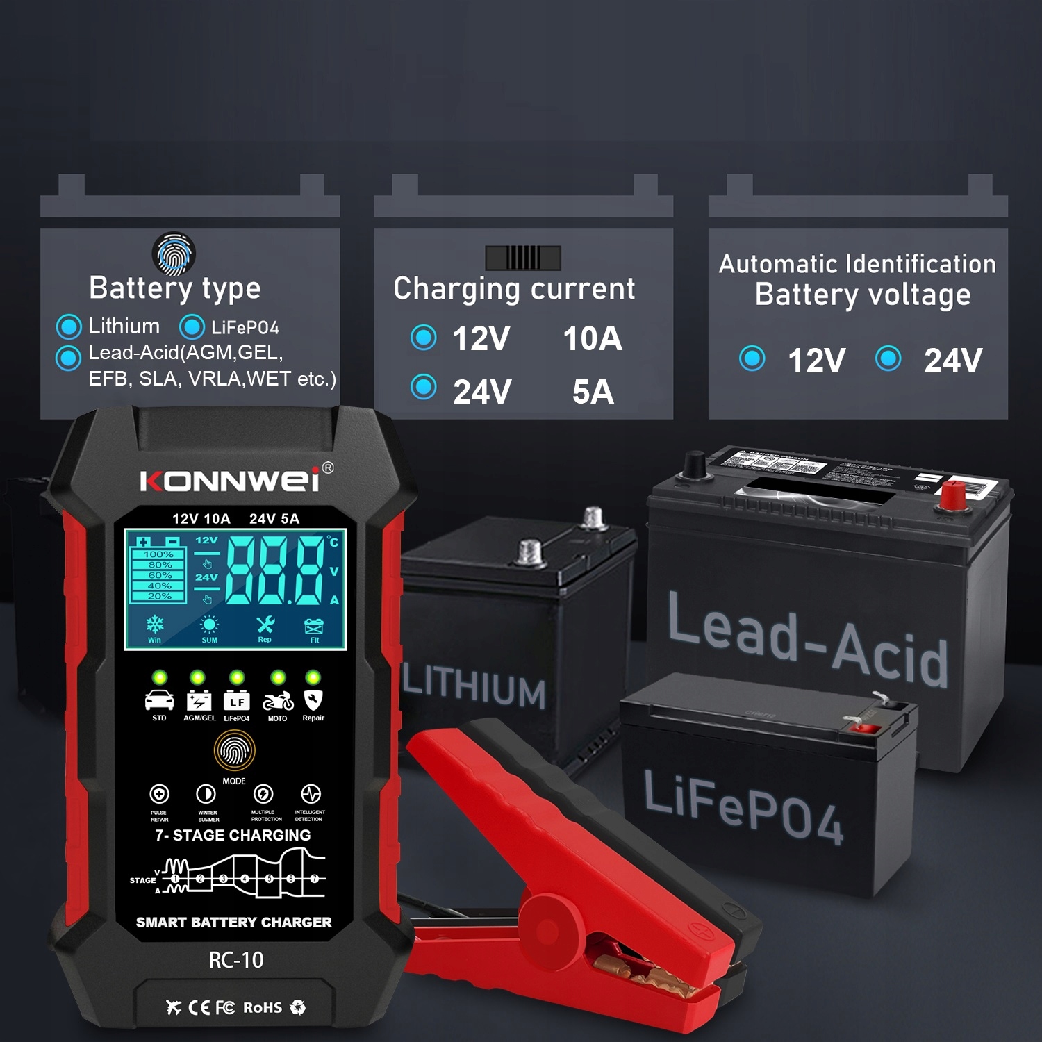 Випрямлення автомобіля LCD 12V - 24V 5A/ 10A Konnwei