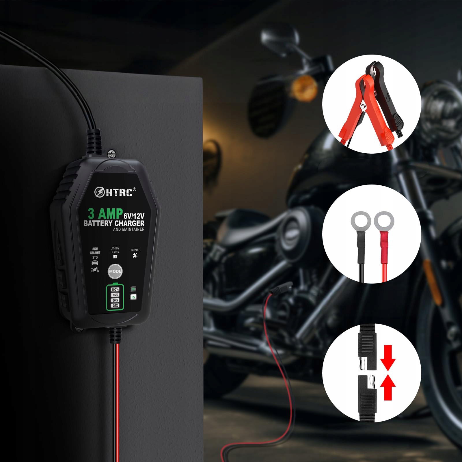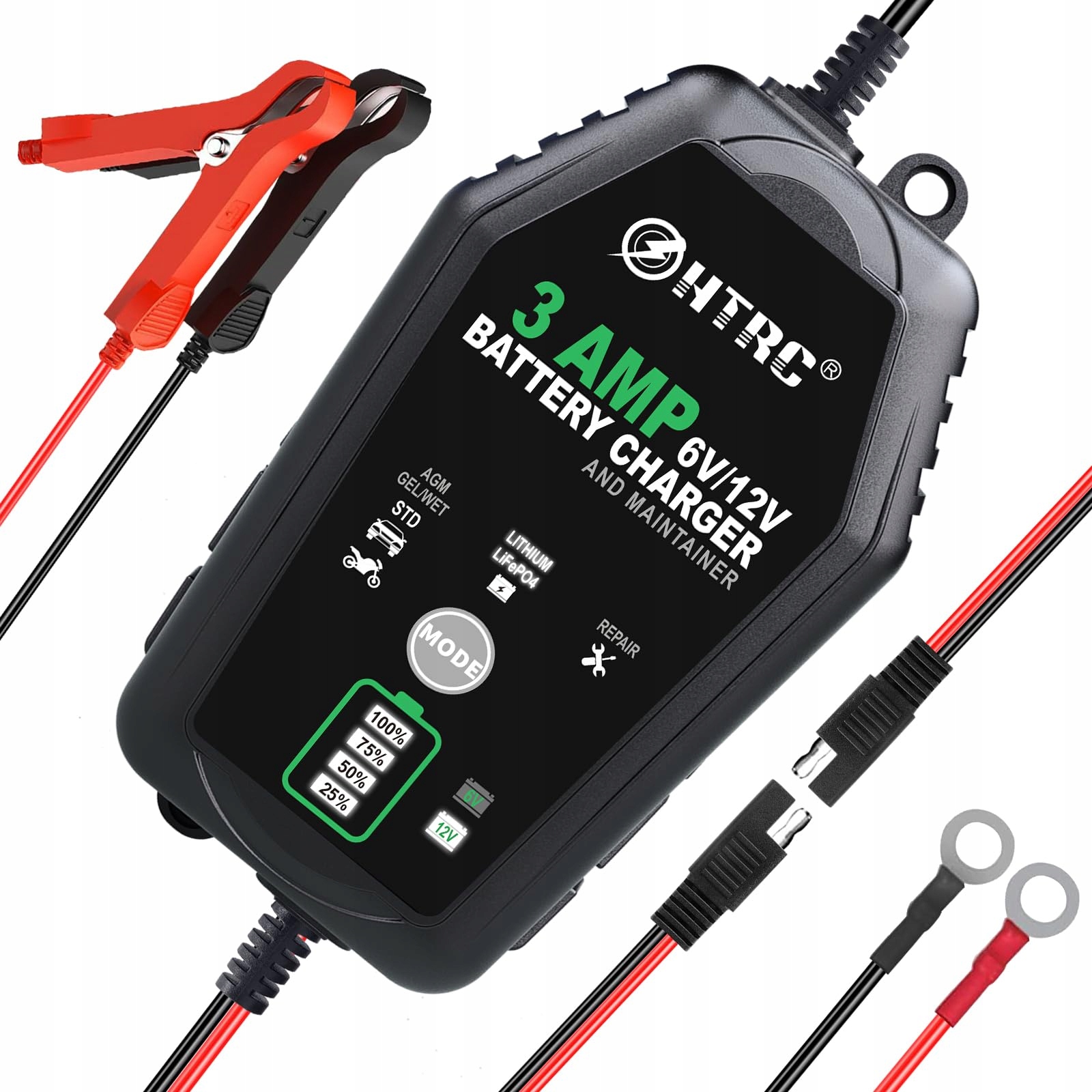 【Зарядний пристрій для автомобільного акумулятора 3A】Зарядний пристрій для автомобільного акумулятора підходить лише для свинцево-кислотних акумуляторів 6 В/12 В (AGM, кальцієвих, гелевих, MF, EFB, SLA, VRLA, WET), літієвих акумуляторів і акумуляторів LiFePo4. Він широко використовується для безпечного й ефективного заряджання автомобілів, мотоциклів, човнів, газонокосарок тощо.