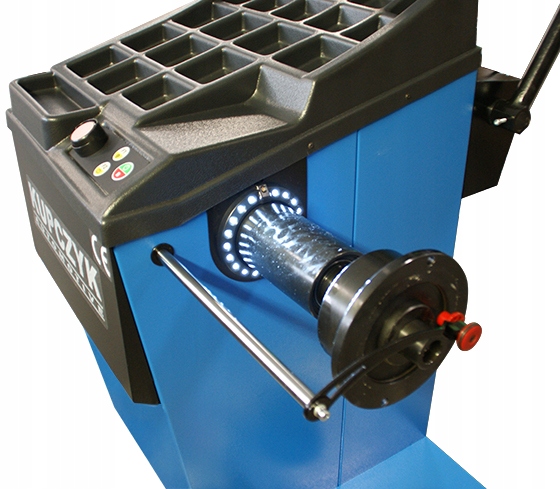Автоматичний балансир коліс Kupczyk оснащений лазером, ехолотом для третього вимірювання, пневматичним затискачем коліс і РК-монітором.