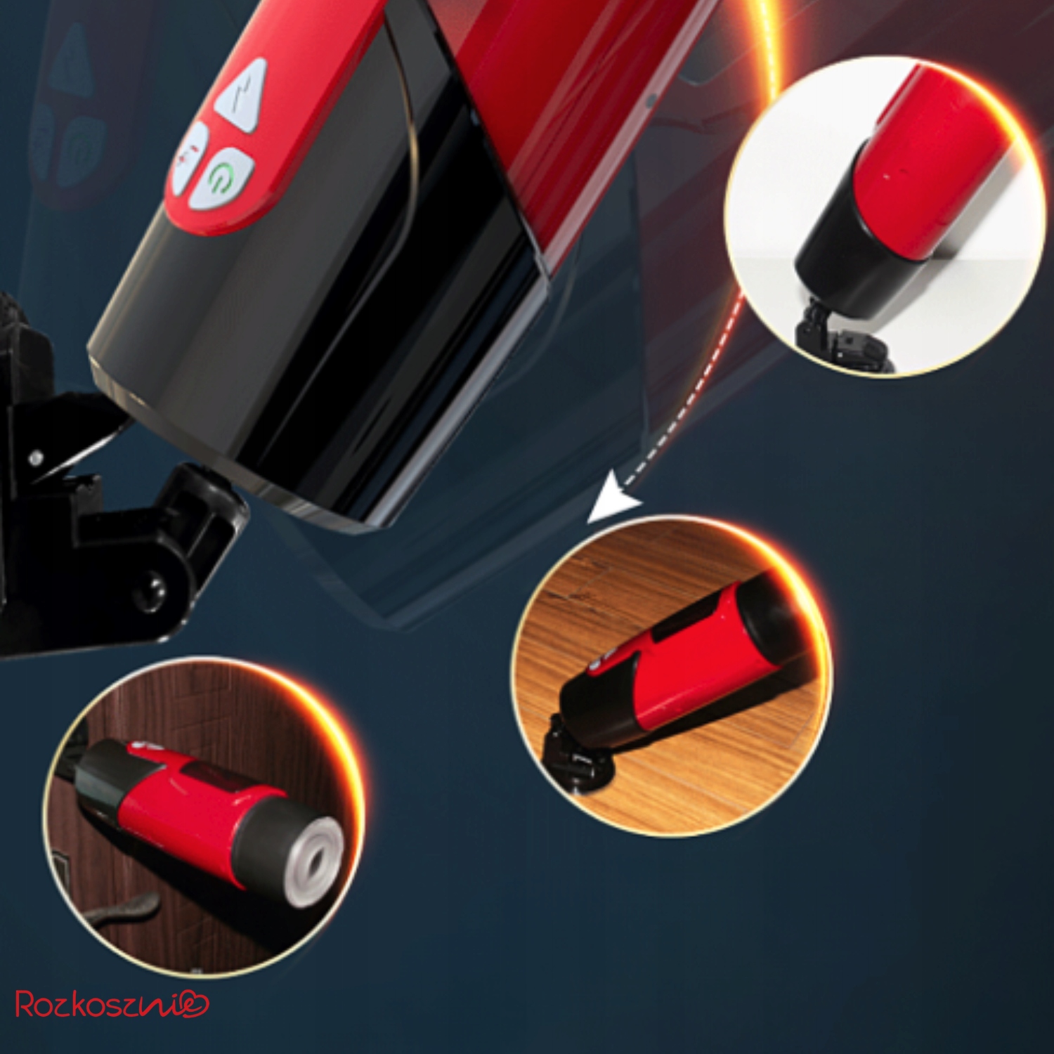 Керування проводиться за допомогою 3 кнопок: увімкніть/вимикаючи, обертання та ковзаючі рухи.
