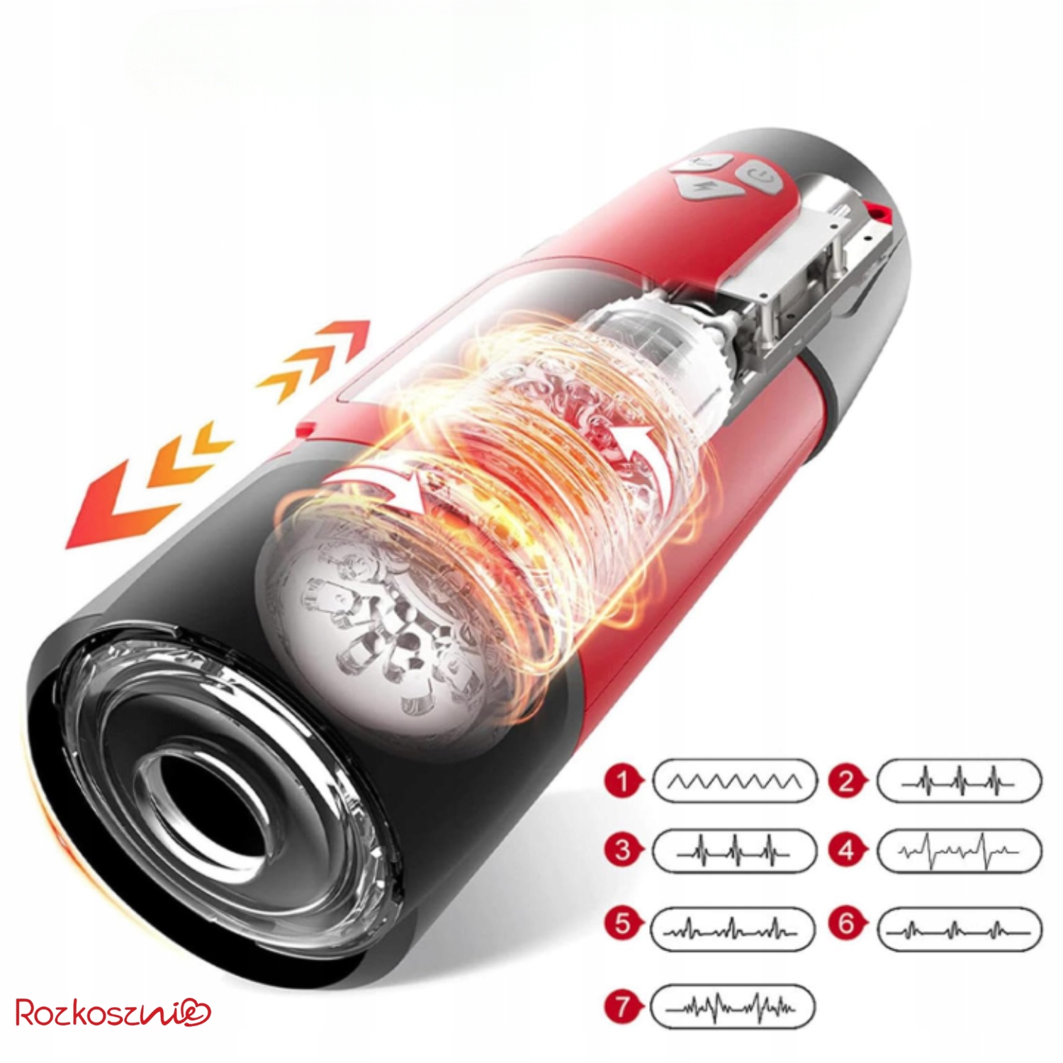 Цей мастурбатор - це комбінація 7 360 ° режимів обертання та 3 режими проходження руху, , які забезпечують глибоку та різноманітну стимуляцію. Розширений механізм гарантує реалістичний досвід, який перевищує класичне співвідношення.