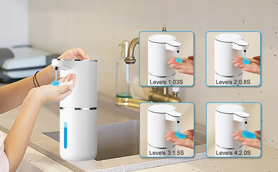 - 💧【 2 Методи кріплення】: Цей стіновий мильний дозатор оснащений 2 самостійними гачками, які можна встановити на стіні або поставити на рівну поверхню. Компактний (7,5 см х 11 см х 20 см) і не вимагає буріння, він ідеально підходить для використання у ванній, кухні чи офісі, додаючи трохи витонченості у ваш простір. 4 Ви можете використовувати 4 налаштування коригування, щоб відрегулювати кількість мила до потрібної концентрації, залежно від того, як довго ви хочете чекати. Просто натисніть кнопку живлення та виберіть одну з 4 -х параметрів часу: від 0,3 секунди до 2 секунд. Завдяки цьому правильна кількість мила дозована, а мило не витрачається.