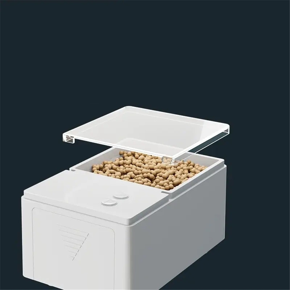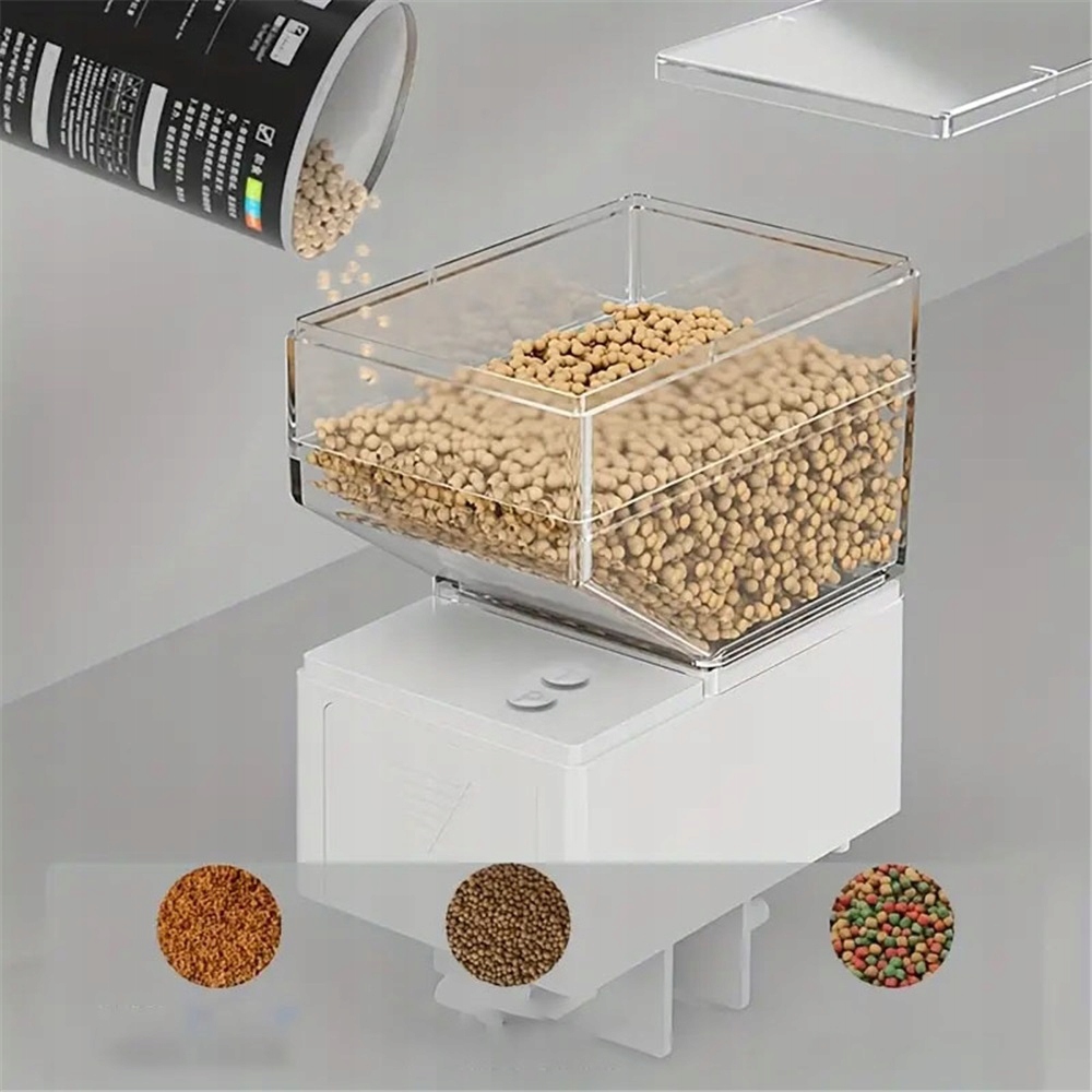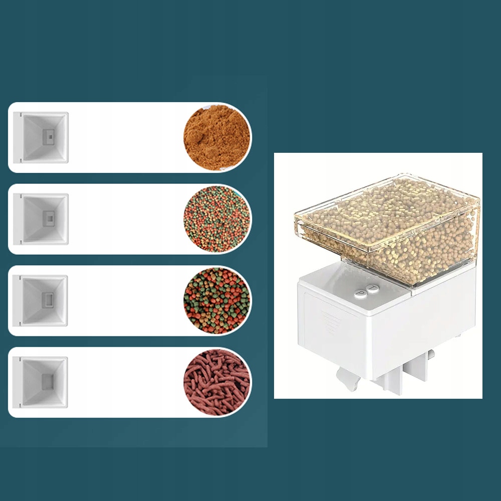 Регульована кількість корму: Завдяки конструкції жолоба Push-Pull і трьом змінним затискачам різного розміру ця годівниця дозволяє точно контролювати розмір порції. Спочатку оснащений контейнером 150 мл + 250 мл, він був оновлений до ємності 500 мл, що усуває необхідність частого наповнення. Годівниця дозволяє вільно регулювати цикли годування та розмір порцій. Контейнер вміщує різні типи їжі, включно з порошкоподібною їжею, гранулами, великими зернами та паличками.