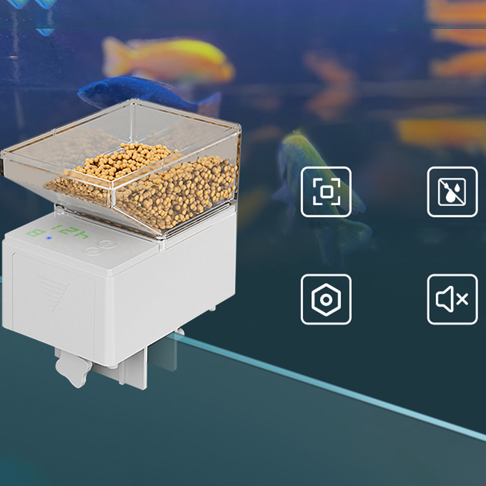 Вологозахищений дизайн великої місткості: Ця автоматична годівниця виготовлена з ABS-пластику з чудовою вологостійкістю та використовує технологію точного ущільнення, щоб ваш корм для риб залишався сухим і не швидкопсувним, забезпечуючи вам більше спокою. Підходить для акваріумів і акваріумів, може вмістити різні види риб.