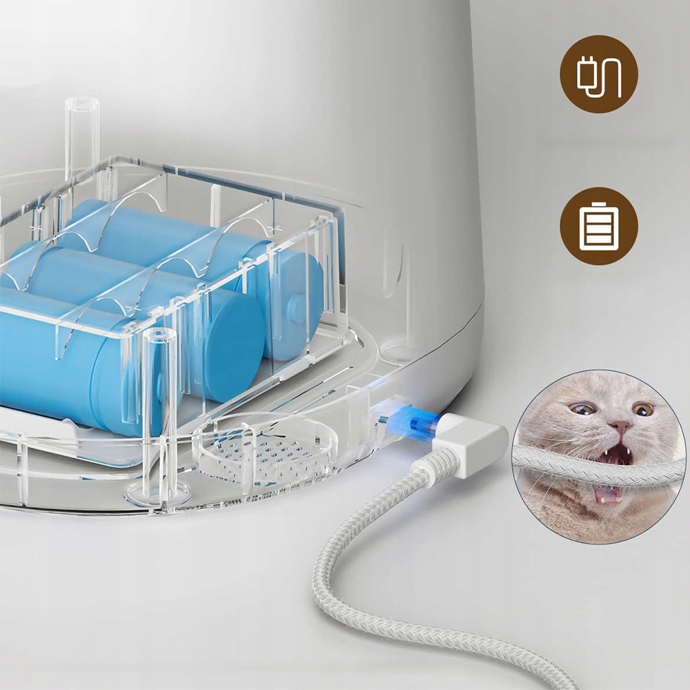 - Використовуйте адаптер 5 В постійного струму та подайте годівницю для собак 3 d лужні батареї (не включені) під час розривів електроенергії, щоб бути впевненим, що ваш вихованець завжди буде годувати . (Оснащені налаштуваннями пам'яті для запобігання раптових відключення електроенергії)