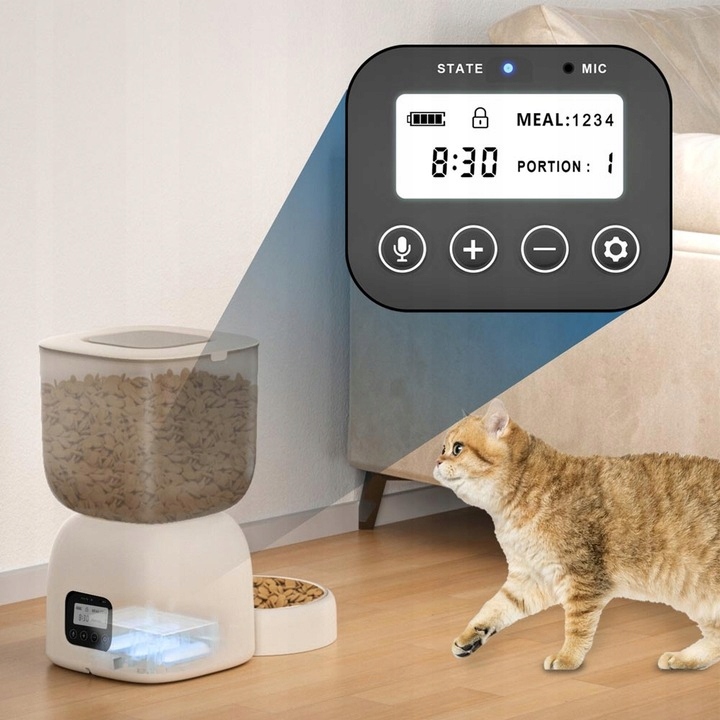 Автоматичний дозатор котячого корму P&K, 10S, запис голосу, білий, 3л