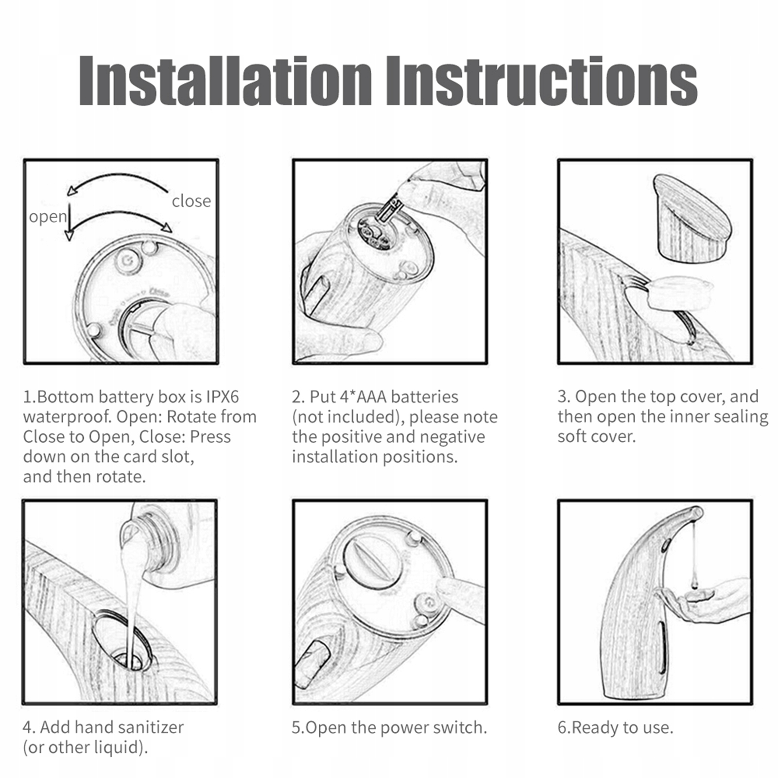 1. Будь ласка, дотримуйтесь інструкцій або самого продукту, щоб правильно встановити батарею з достатньою потужністю, інакше дозатор мила не працюватиме.