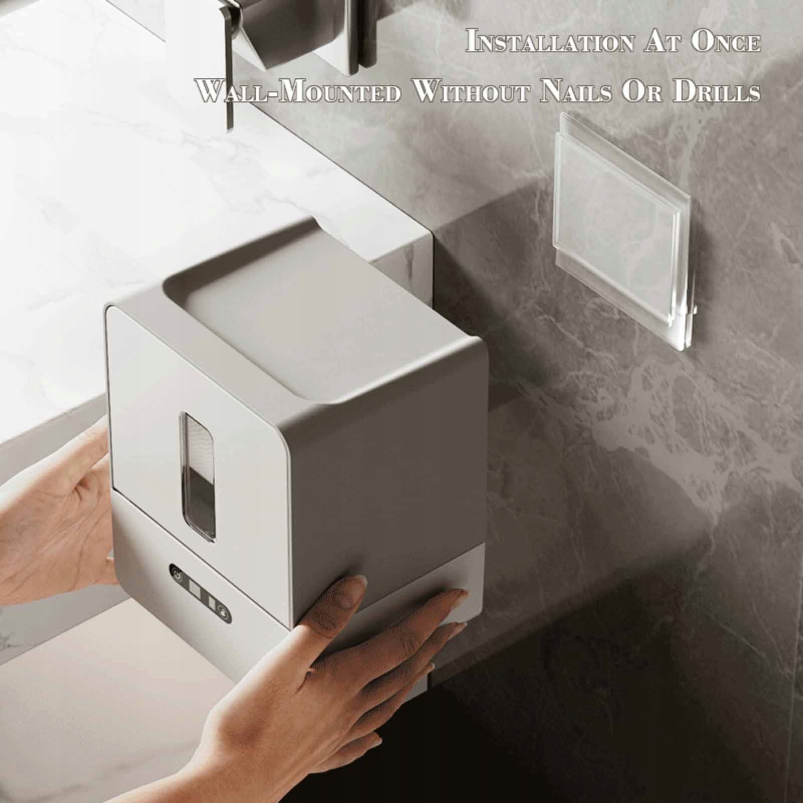 5. Легке встановлення на стіні: автоматичний диспенсер для паперових рушників можна легко встановити на стіні без інструментів або свердління, не залишаючи слідів. Ідеально підходить для людей, які цінують як функціональність, так і естетику.