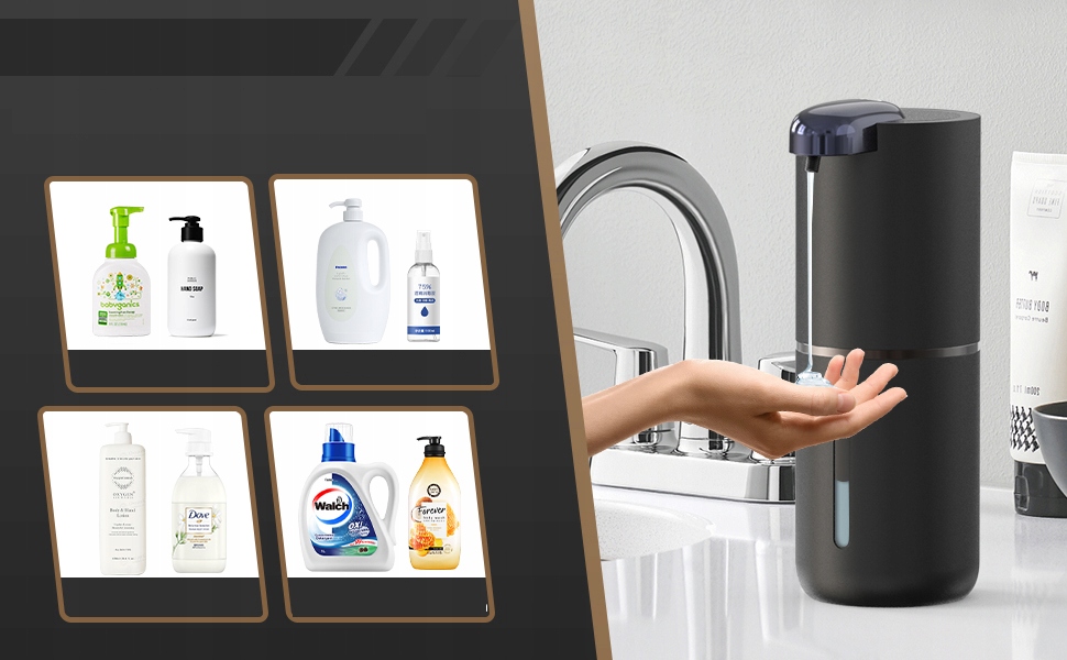 💧Наш безконтактний дозатор мила може безпосередньо додавати різноманітні засоби для чищення, як-от гелі для душу, миючі засоби, шампуні та миючі засоби.