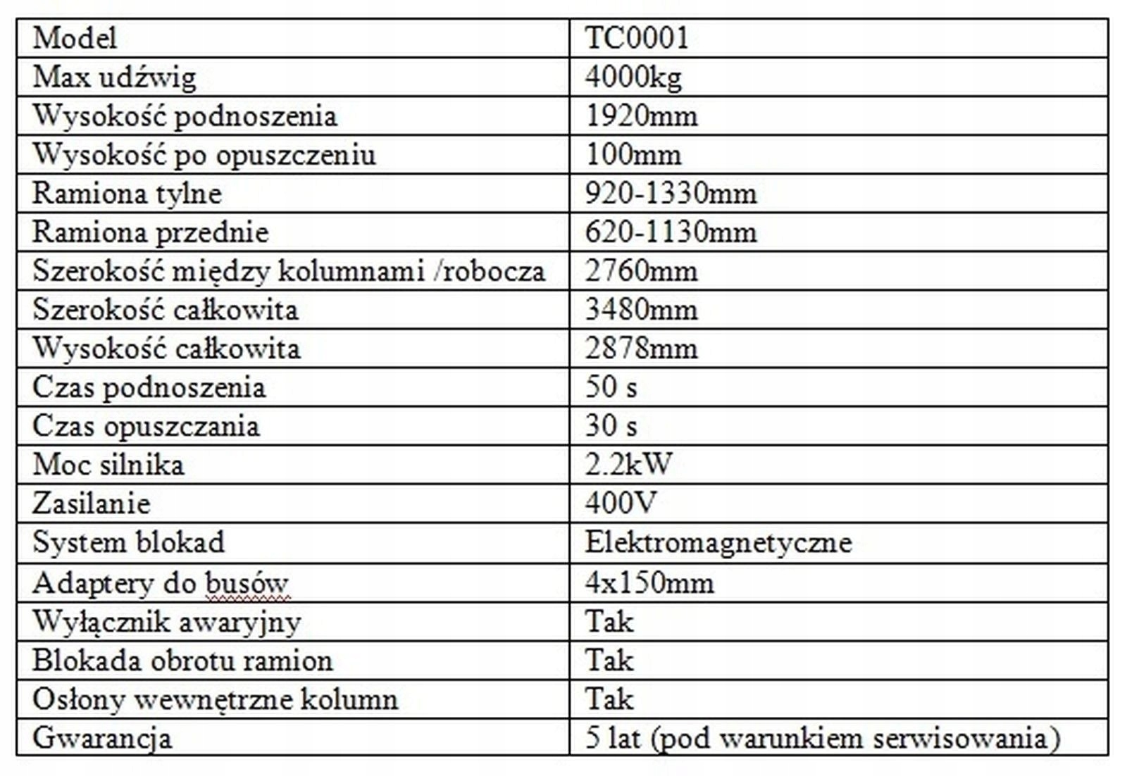 Підйомник TC0001 є посиленою версією надзвичайно популярного автоматичного підйомника TQ0001. Підйомник оснащений самонесучою рамою, що дозволяє встановити в цеху, де товщина бетонної стяжки недостатня для встановлення стандартного двоколонного підйомника.